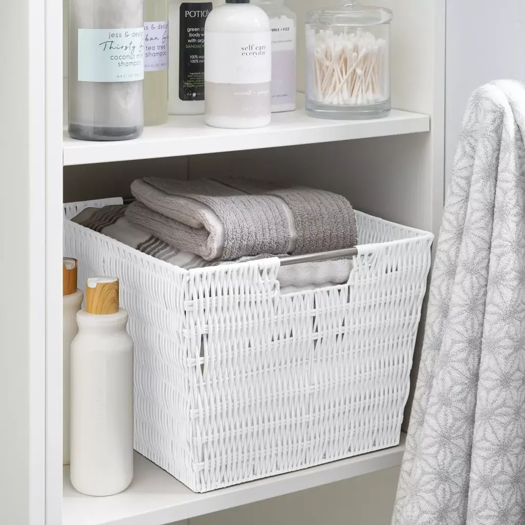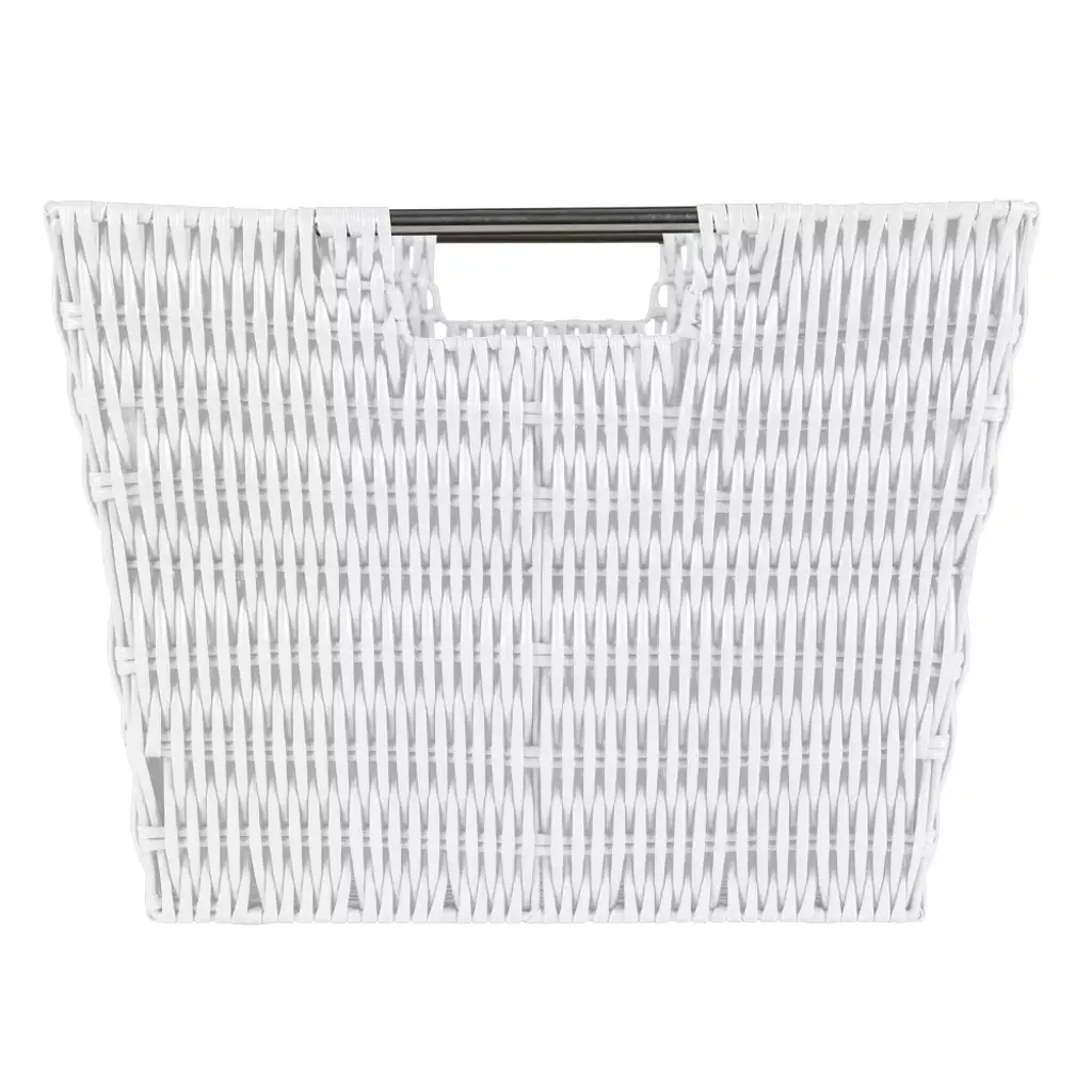 Organize and create storage in your home with the Simplify Rattan Tote Basket Collection. Simplify's Rattan Tote is a PE Basket with an iron frame and 2 sturdy stainless steel carry handles. It is strong and durable prolonging it's life, and it's lightweight design makes it easy to lift and carry. Fits any home decor with it's wide selection of colors. Store your household belongings and organize space with these stylish baskets. stack them together in a corner of your craft area, home office or dorm to keep your essentials close at hand in an organized manner.