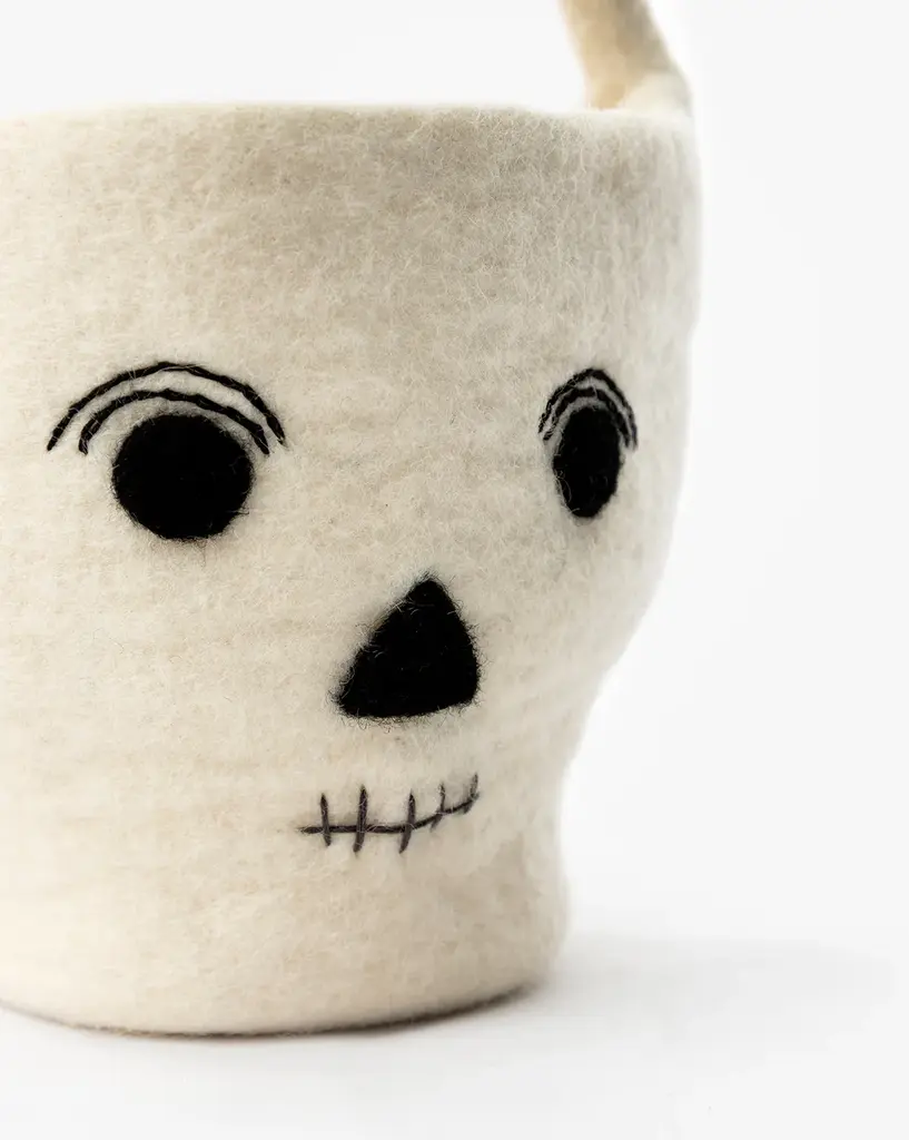 Crafted from soft felt with stitched skeletal details, the Skeleton Trick or Treat Felt Basket offers a playful and functional touch to Halloween festivities. Lightweight yet sturdy, it's ideal for little ones collecting treatsor for styling by the entryway filled with candy or seasonal decor. A spirited essential with just the right amount of spooky charm.