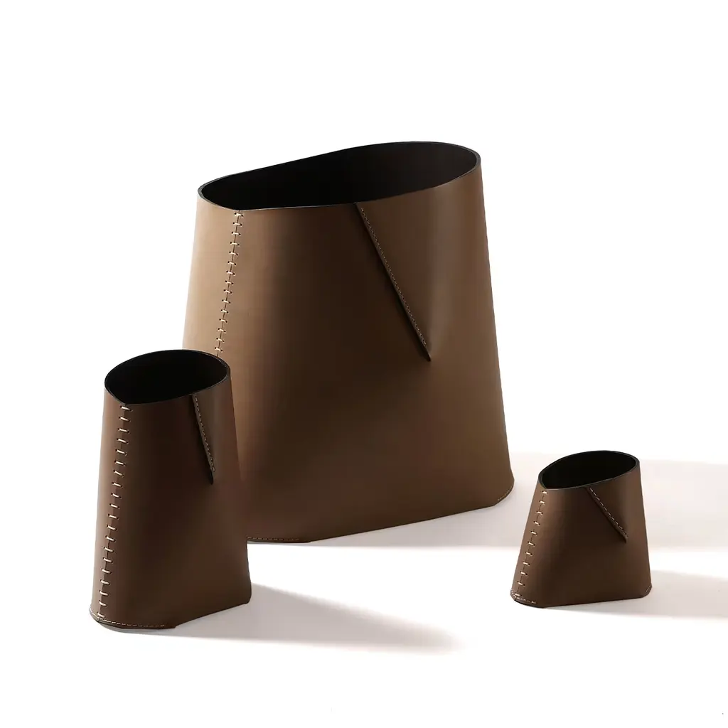 A neat and dynamic diagonal cut - hence the name "slash" - defines this superb leather basket's belonging to the Slash Collection. Obtained from a single double-layer of fine leather, it flaunts contrasting hand-sewn stitching unmistakably attesting to its luxurious sartorial allure. Size variants - Roum-Roum and Marcel - are available in the Artemest catalog, please contact the Concierge for different color options.