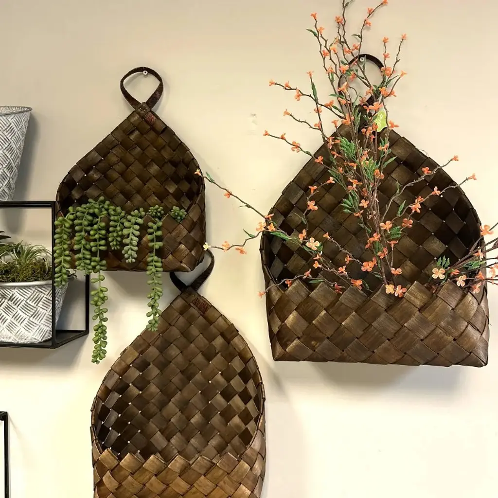 Add a stylish touch to any space with this decorative hanging basket, perfect for displaying faux flowers, accent pieces, or small decorative items. Its unique shape brings visual interest and charm, making it an ideal piece for living rooms, patios, entryways, or kitchens. Designed for versatility, it can be hung individually or in a set for layered décor effects. Available in three size options—large, medium, and small—this hanging basket set offers flexibility in styling and placement. Crafted for both functionality and aesthetic appeal, these baskets are a practical way to elevate your home décor while keeping decorative items organized and showcased.