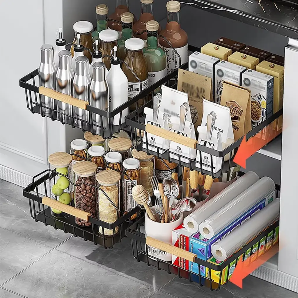 Slide Out Cabinet Organizer Basket, No-drill Pull Out Mesh Storage Drawer For Kitchen, Bathroom, Home Cabinets, Multifunctional Shelf Solution