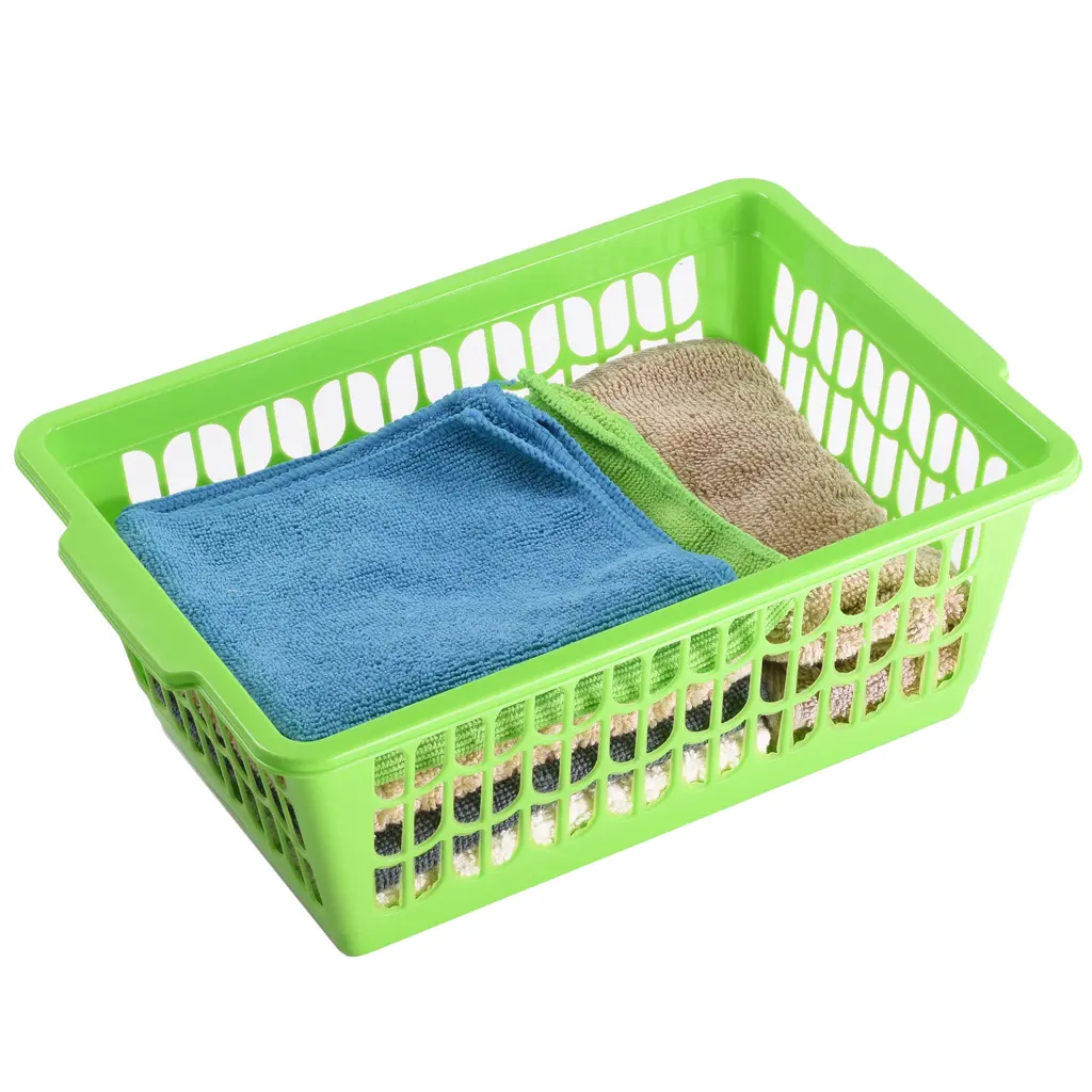 Keep commonly used bottles and accessories organized with this rectangular plastic storage basketKeep Supplies ContainedWhether you need to organize the kitchen pantry, bathroom shelves, closet, or kids room, this plastic basket expedites the process to keep everything organized and easy to access. This basket is solidly made to contain small items and heavy objects in drawers, desktops, shelves, and pantries without acting flimsy or wobbly. Featuring vented holes for airflow, it is are made of BPA-free plastic material and withstands common tear and wear for long-term durability.Attractive Colors to Choose FromStorage baskets built with personality and style in mind. We offer these trays in seven vivid colors to match your living settings:
