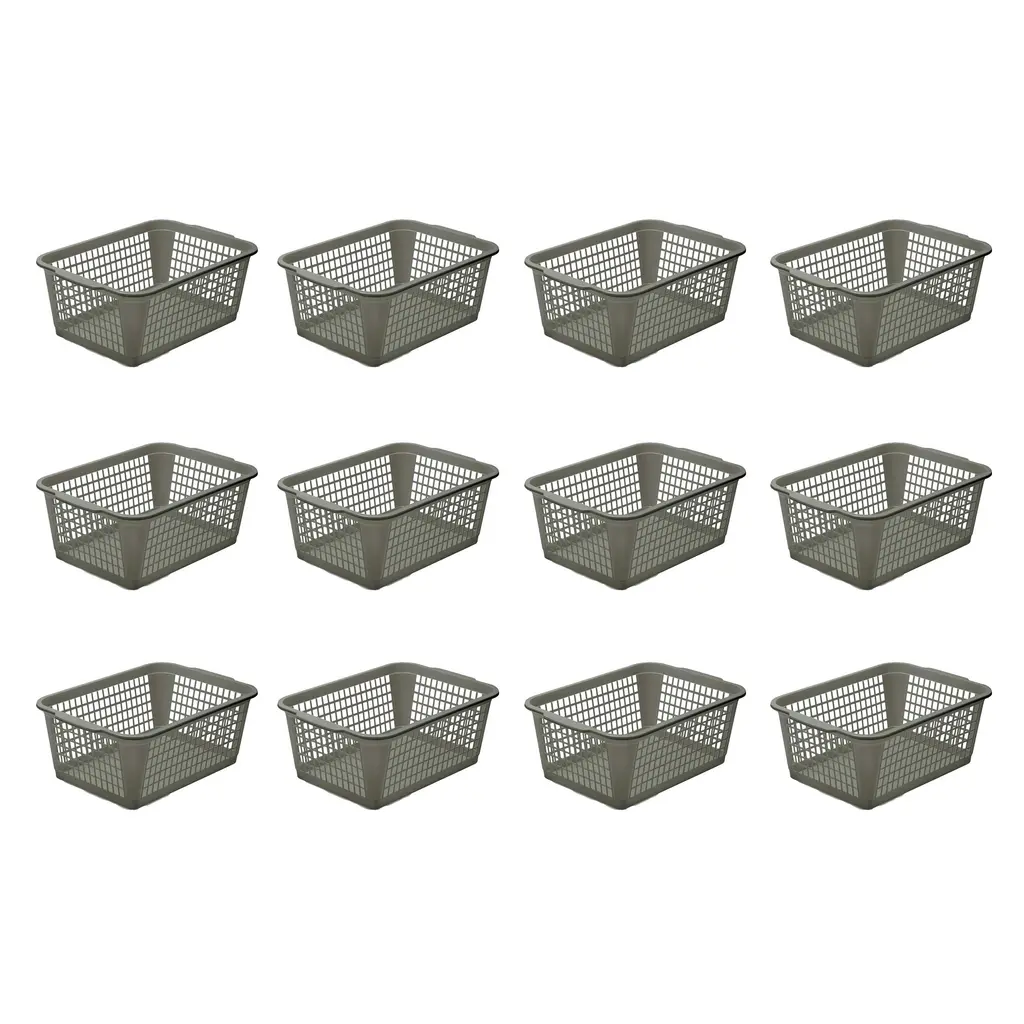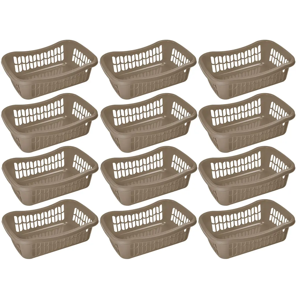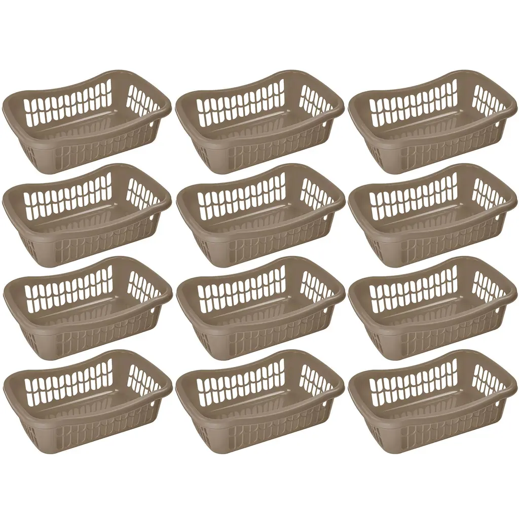Small Plastic Storage Basket For Organizing Kitchen Pantry, Pack Of 12 - Beige