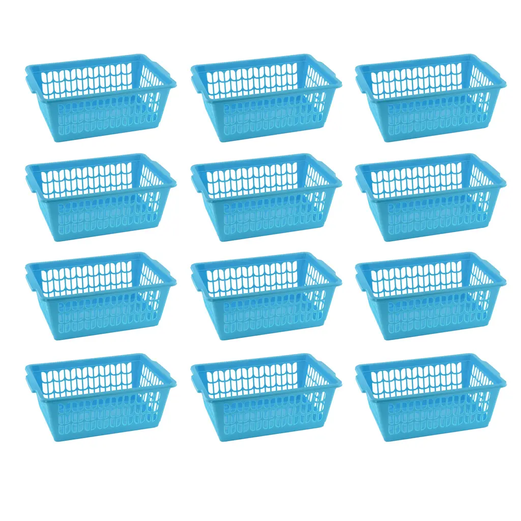 Keep commonly used bottles and accessories organized with this rectangular plastic storage basketKeep Supplies ContainedWhether you need to organize the kitchen pantry, bathroom shelves, closet, or kids room, this plastic basket expedites the process to keep everything organized and easy to access. This basket is solidly made to contain small items and heavy objects in drawers, desktops, shelves, and pantries without acting flimsy or wobbly. Featuring vented holes for airflow, it is are made of BPA-free plastic material and withstands common tear and wear for long-term durability.Attractive Colors to Choose FromStorage baskets built with personality and style in mind. We offer these trays in seven vivid colors to match your living settings: