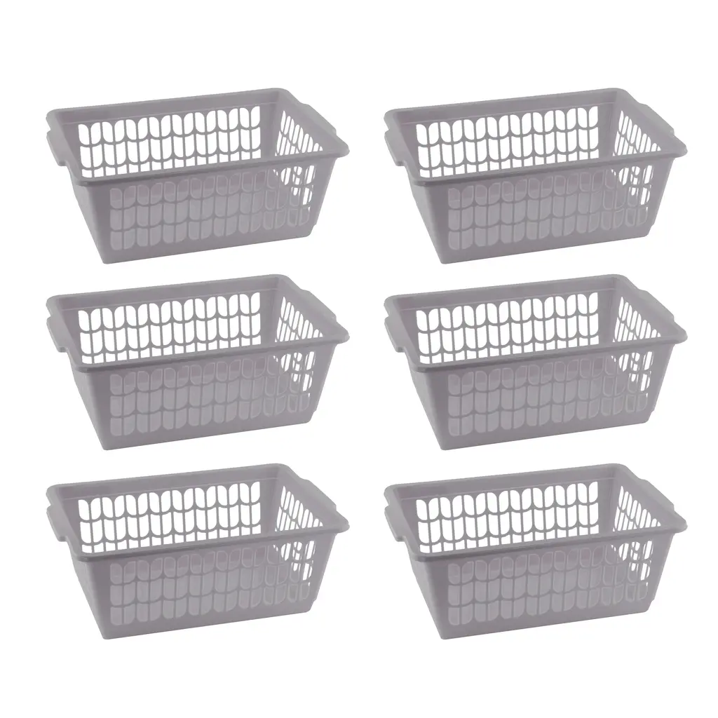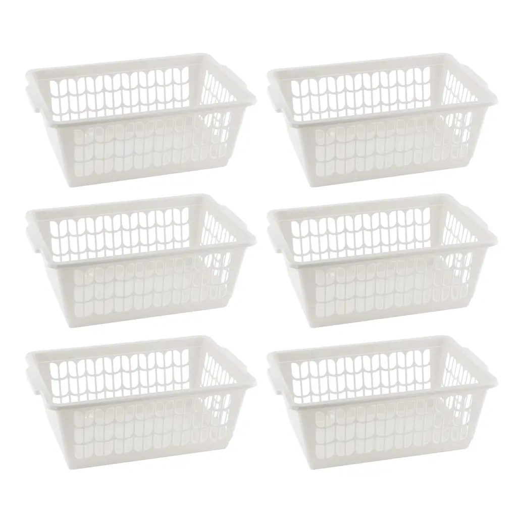 Small Plastic Storage Basket For Organizing Kitchen Pantry, Pack Of 6 - White