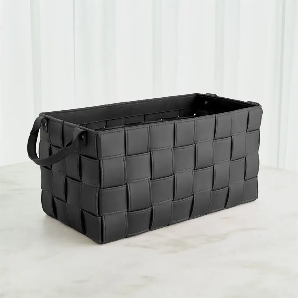 Soft Woven Leather Basket Black Small