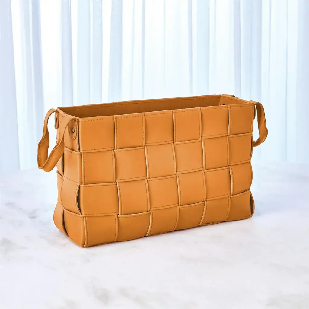 Inspired by handcrafted leather goods, The Soft Woven Basket is made of woven top grain marble leather. From a fashion forward perspective, Global Views offers accessories, furniture, statement lighting, and an assortment of rugs and mirrors to add beauty and joy to your home.