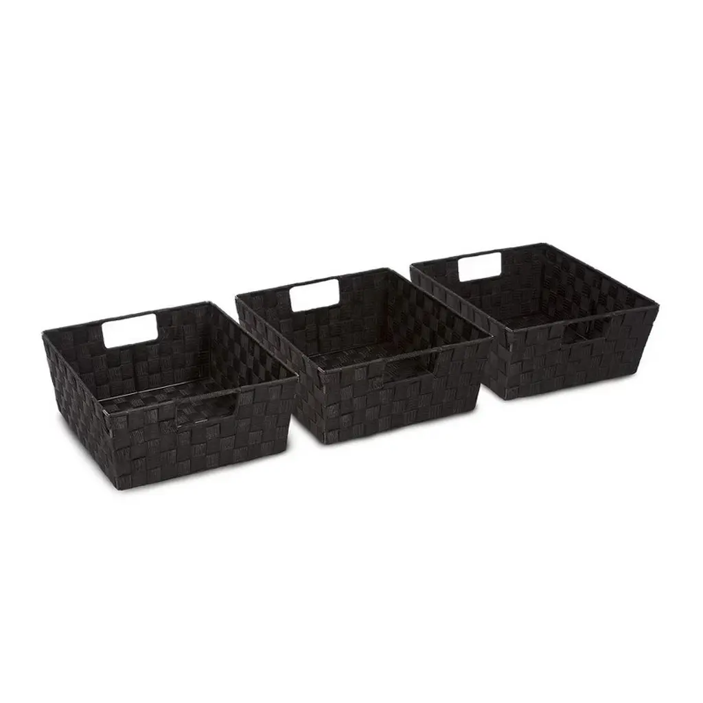 Sorbus 3-pack Storage Basket Set - Mesh Hand-woven, Stackable Baskets For Shelves, Closets, Bathroom And More (Black)