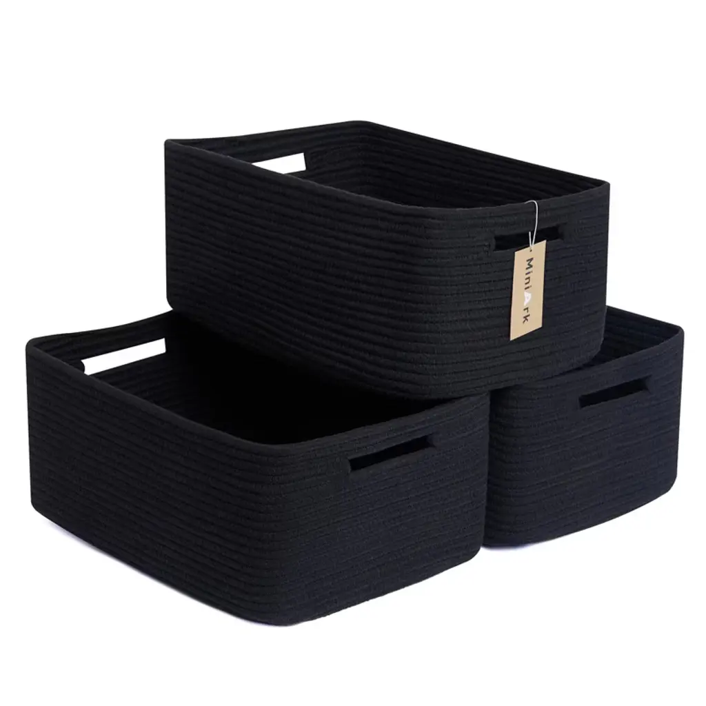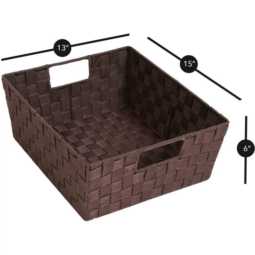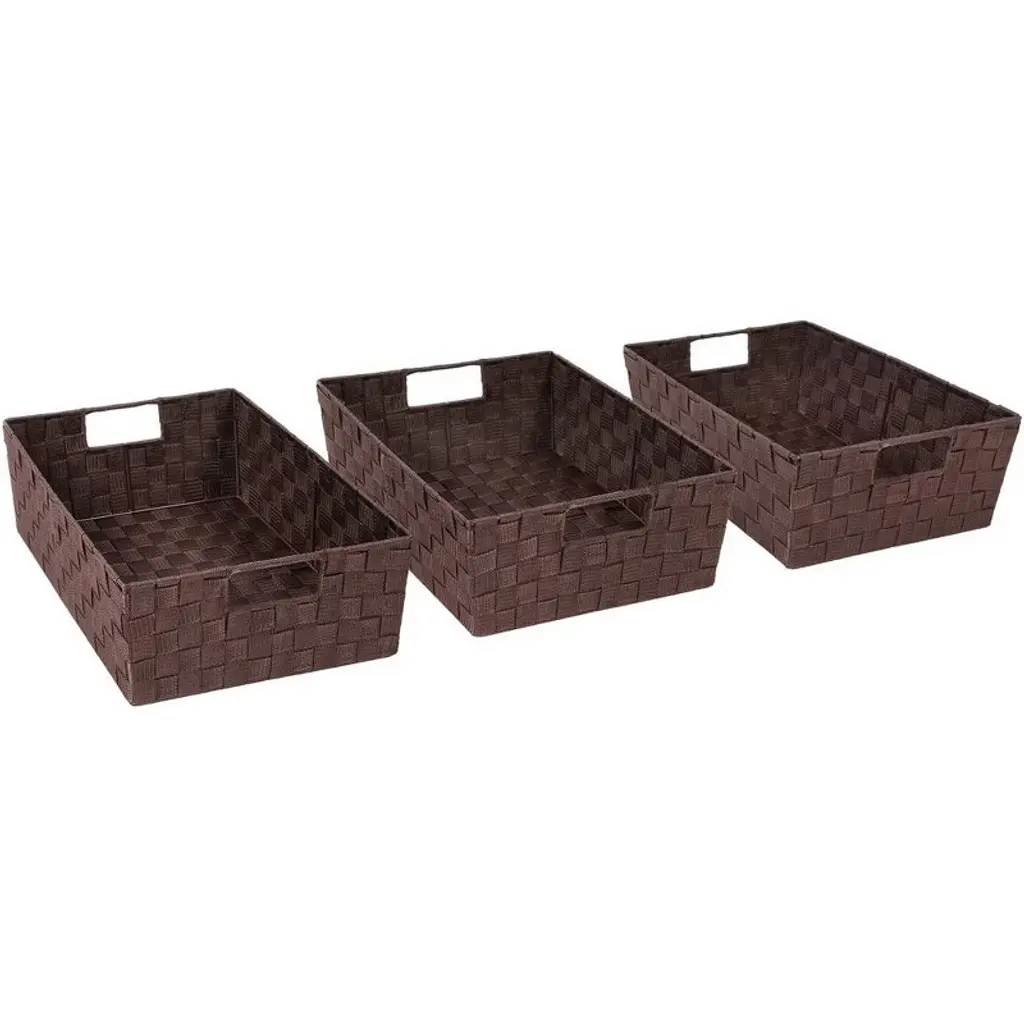 Sorbus 3-pack Storage Basket Set - Mesh Hand-woven, Stackable Baskets For Shelves, Closets, Bathroom And More (Chocolate)