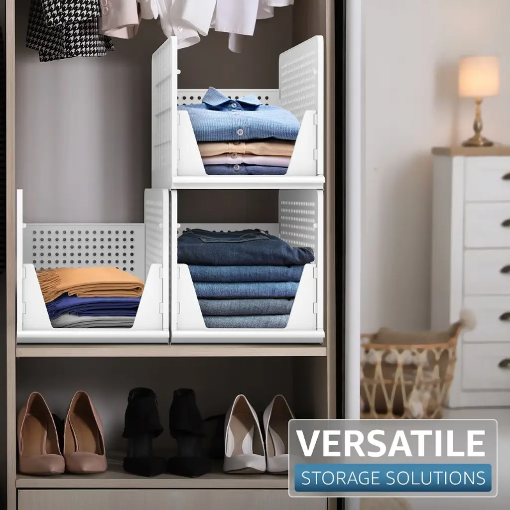 The Sorbus Closet Shelf Organizer offers a practical solution for decluttering and organizing any space. These stackable storage baskets maximize vertical space, making them perfect for closets, bedrooms, bathrooms, or pantries. Designed for versatile use, they can organize clothes, linens, toys, pantry items, and office supplies. Made of durable plastic, they provide reliable strength and stability for various items. The easy, tool-free assembly allows you to quickly set them up and start organizing with ease.
