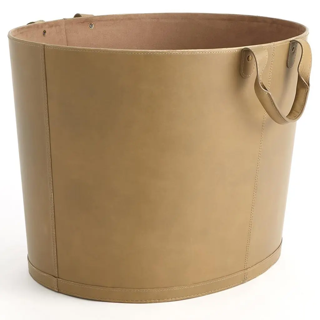 Sorrento Rustic Brown Oval Leather Floor Basket