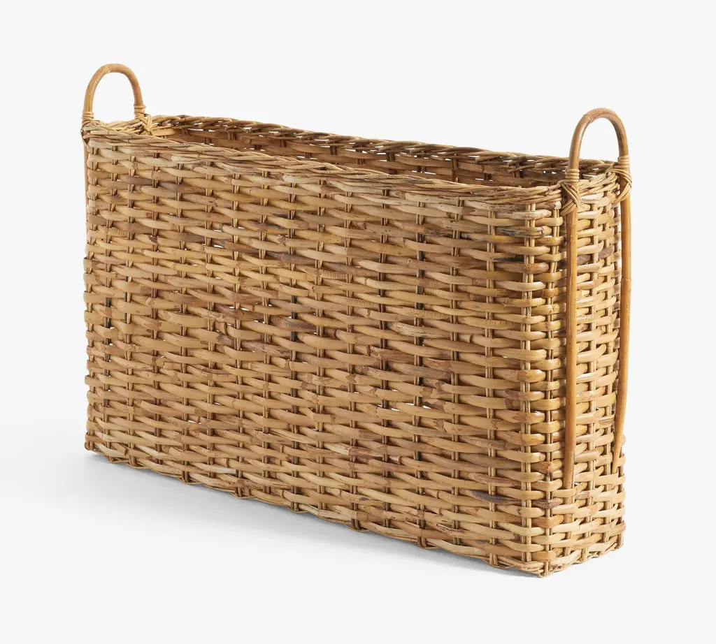 Square Wicker Basket With Wood Handle