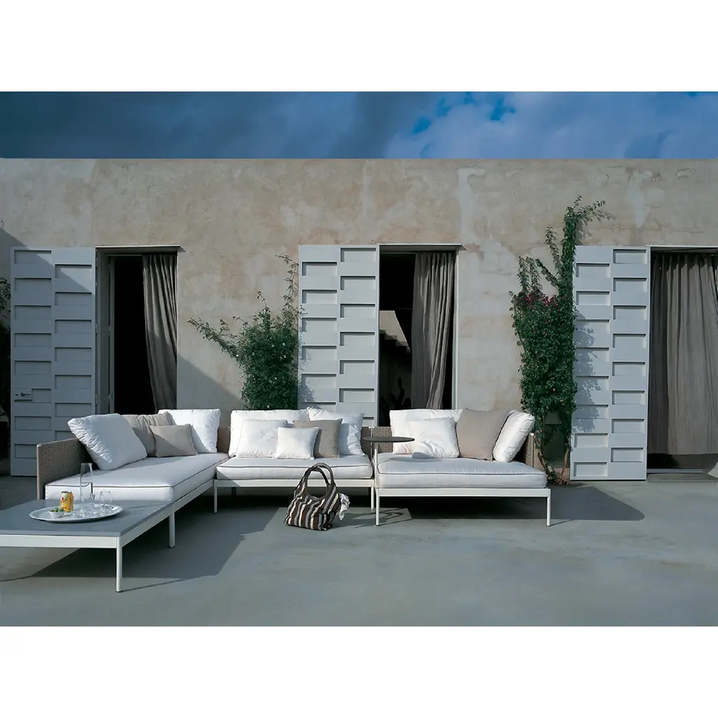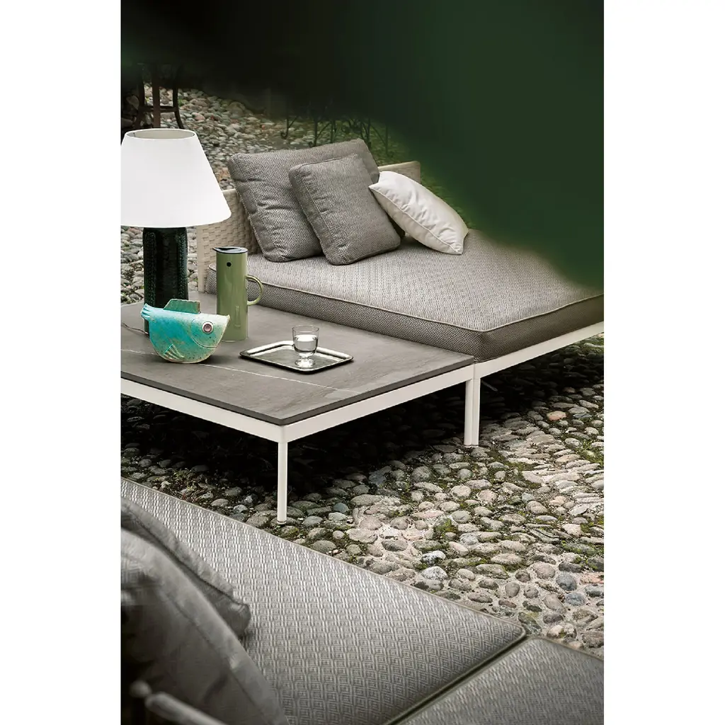 Introducing the Stainless Steel Outdoor Coffee Table by Roda Basket. Enjoy extreme simplicity with an elegant, modular design perfect for any living area. The powder coated stainless steel structure, available in smoke or milk color, paired with the chic top, make this coffee table a versatile and sophisticated addition to any collection.
