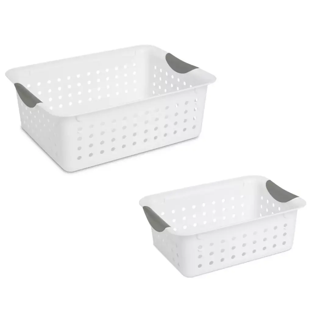 The Medium & Small Ultra Basket is ideal for organizing countertops, kitchen cabinets, home office space, and shelving around the home. The contoured handles allow for comfortable transporting, and the smooth finish is easy to clean. Item is ideal for storing CD’s, DVD’s, bathroom, or office supplies. These baskets are also durable with titanium insert handles.