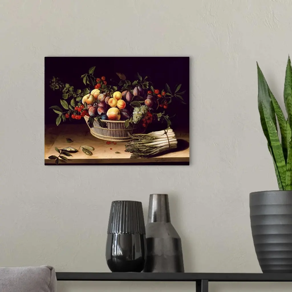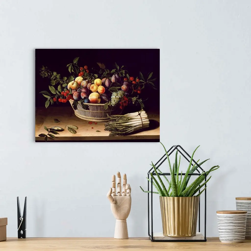 Still Life With A Basket Of Fruit And A Bunch Of Asparagus