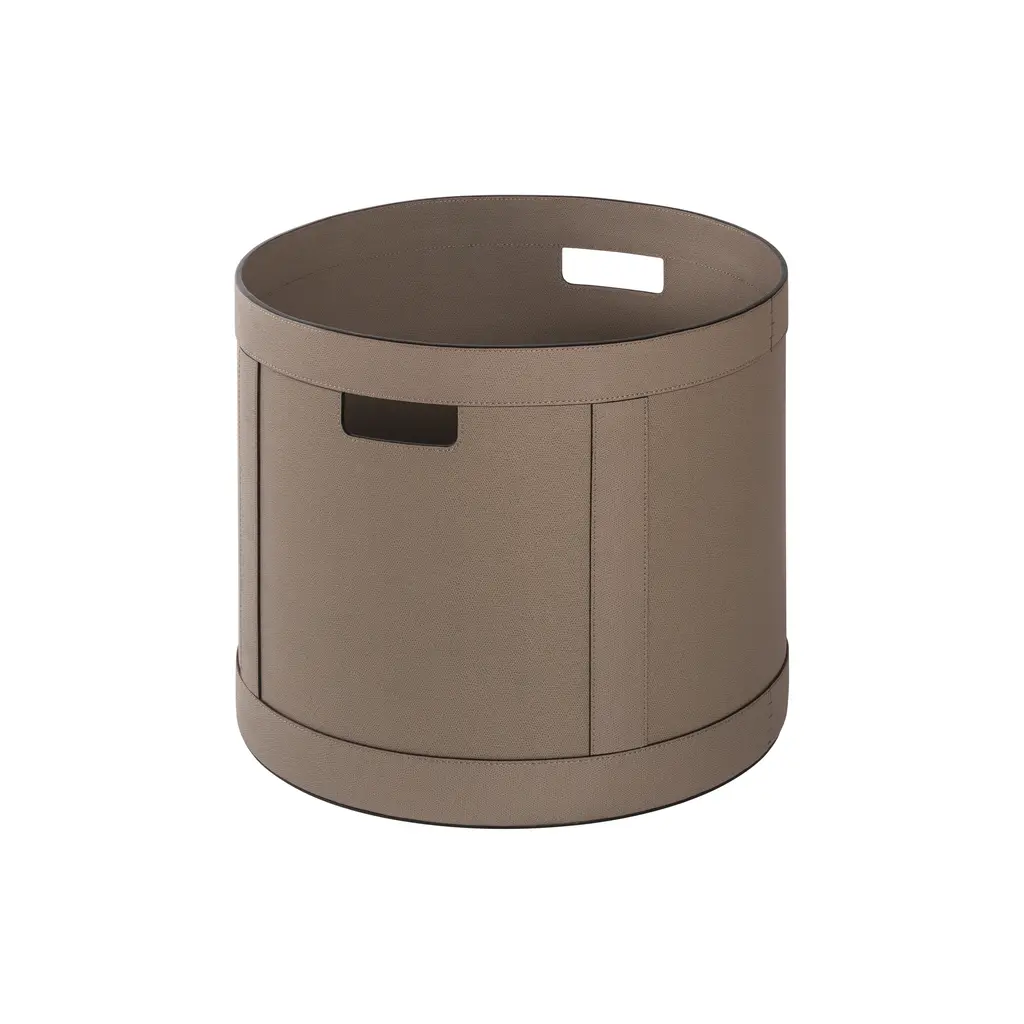 A beautifully simple solution for elegant, everyday storage, the Storage Basket with Handle from Giobagnara is a testament to the purity of form and material. Expertly handcrafted in Italy, this versatile basket boasts a seamless, self-supporting structure made entirely from durable printed calfskin leather. The clean, cylindrical form is punctuated by a single, graceful handle, making it easy to move from room to room. A fusion of minimalist design and practical luxury, it’s a timeless accessory for any well-appointed home. Highlights: