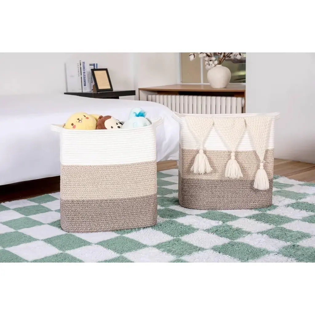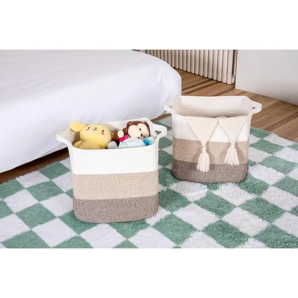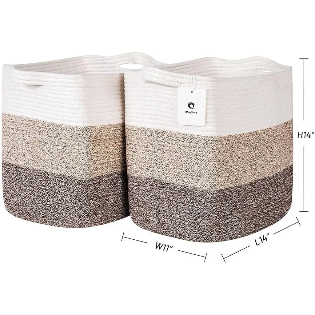 ⭐️Multipurpose Cube Storage Basket - TheseL16×W11.4×H15.9 rope storage baskets are great for keeping your daily routine more organized and provide plenty of compact for living room,laundry basket,room decor, children's toys or nursery Storage space storage and room accessories ⭐️ Design - These rope baskets are made of tightly woven cotton for storage and laundry, with a retro and modern feel, making them stronger and more durable than regular wicker storage baskets, linen closet organizers, and storage baskets. ⭐️Retro colors are suitable for every style - these multifunctional foldable storage bags come in 4 unique colors and multiple sizes, complementing your home wardrobe or style. ⭐️External handles - These storage rope baskets are also equipped with slender handles, which have a seamless appearance and complete functionality. It is very suitable for picking up toys or carrying items at home, storing clothes, and using dirty clothes.⭐️The oversized storage box for decorative shelves such as books, blankets, clothes, etc. is deeper and higher than a standard cotton rope basket, providing sufficient depth when storing household items, toys, hobbies, diapers, clothes, classroom storage rooms, or art and crafts Laughbird