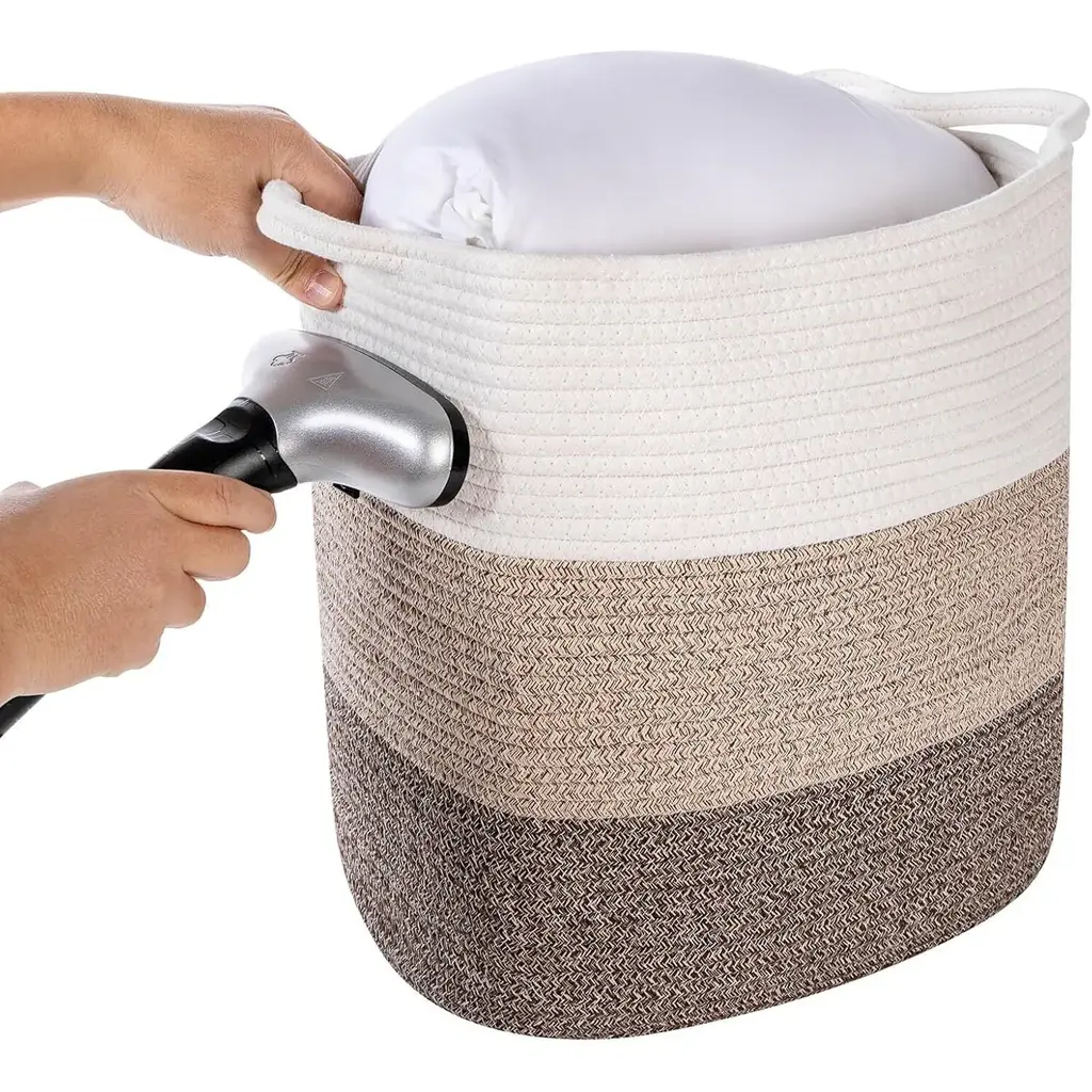 Storage Baskets For Clothes Fabric Cotton Rope Storage Basket With Handles - 14"l X 11"w X 14"h - Gradient Brown