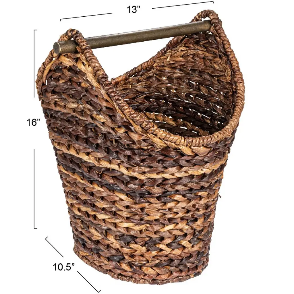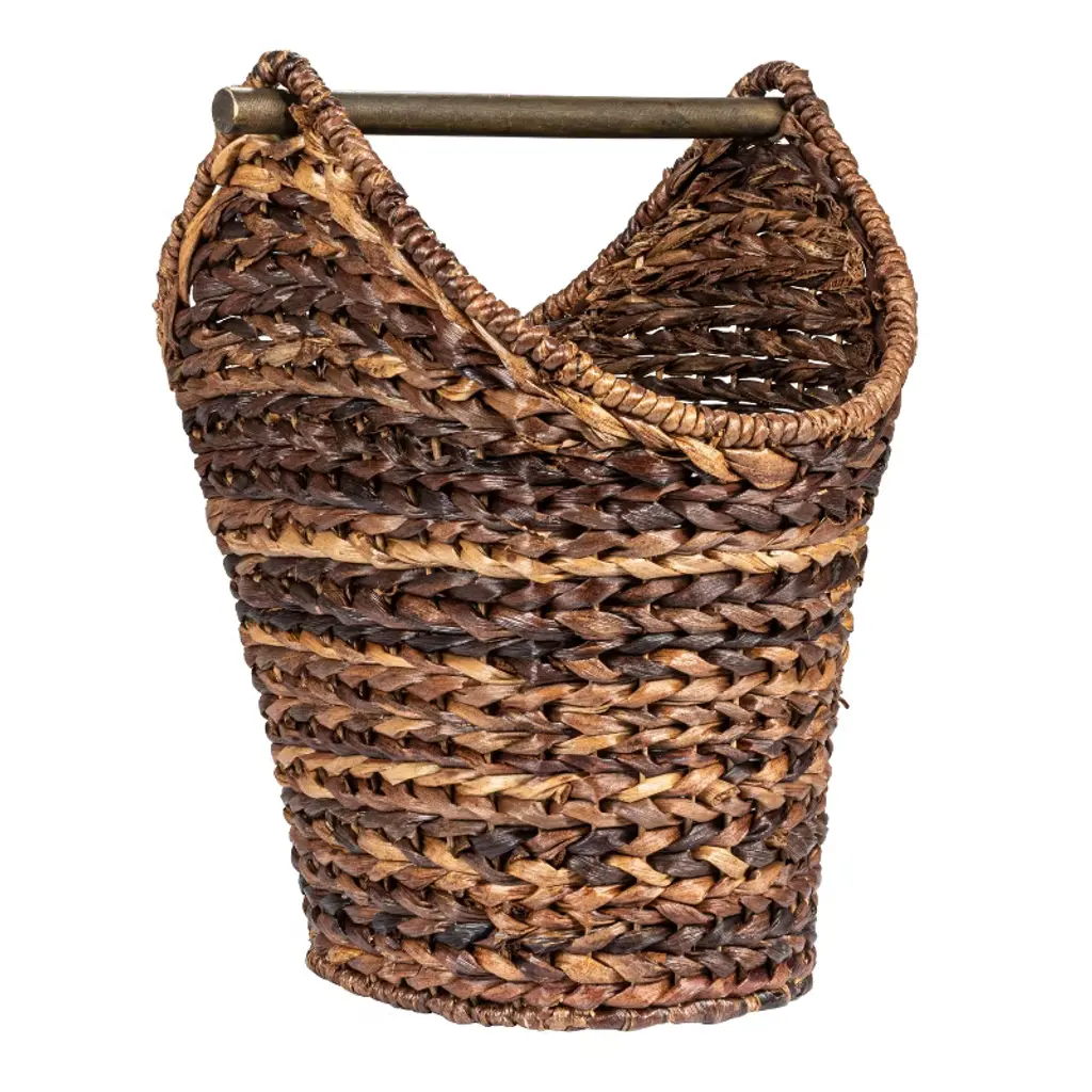 Storied Home Boho Oval Braided Bankuan Bathroom Toilet Paper Basket With Wood Handle, Dark Brown