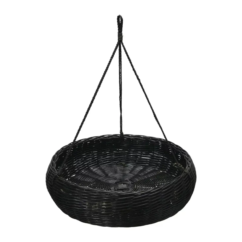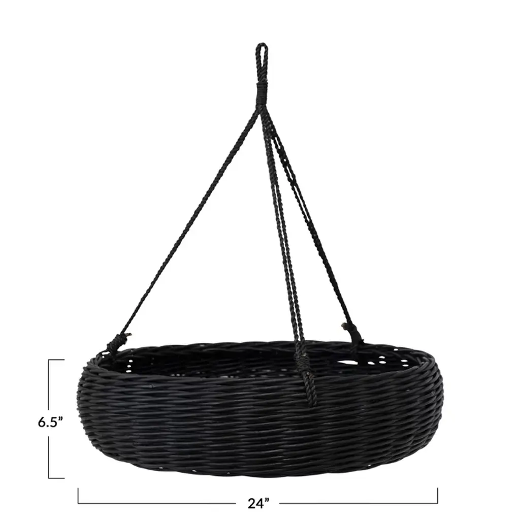 Storied Home Hand-woven Hanging Rattan Basket With Jute Rope Hanger