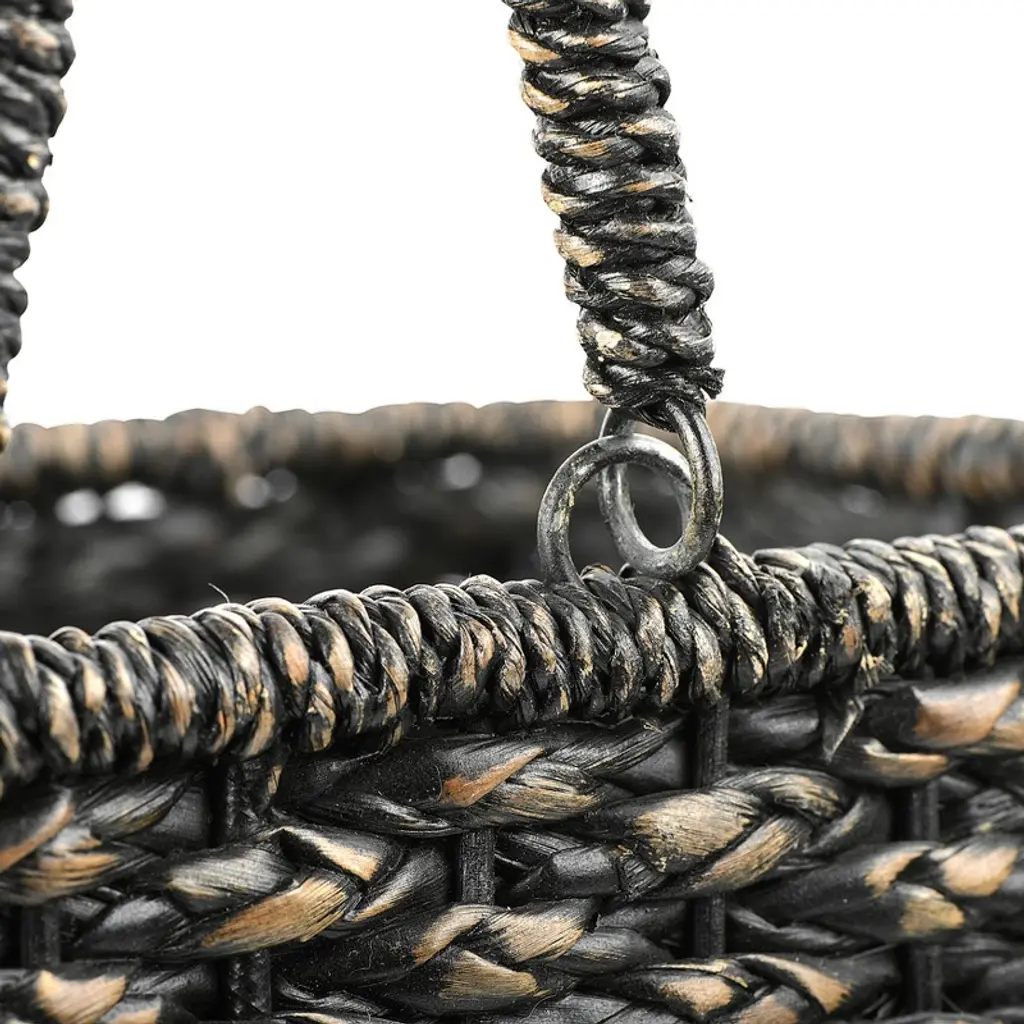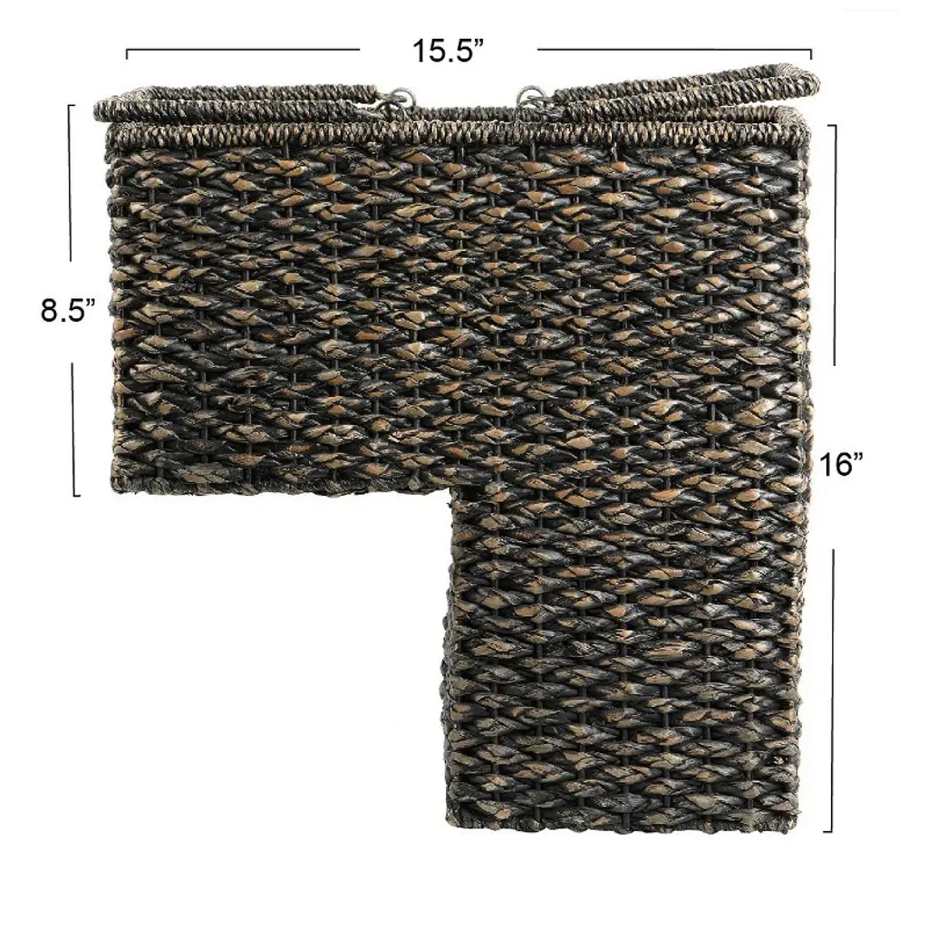 Storied Home Woven Bankuan And Rattan Stair Basket With Handles, Black