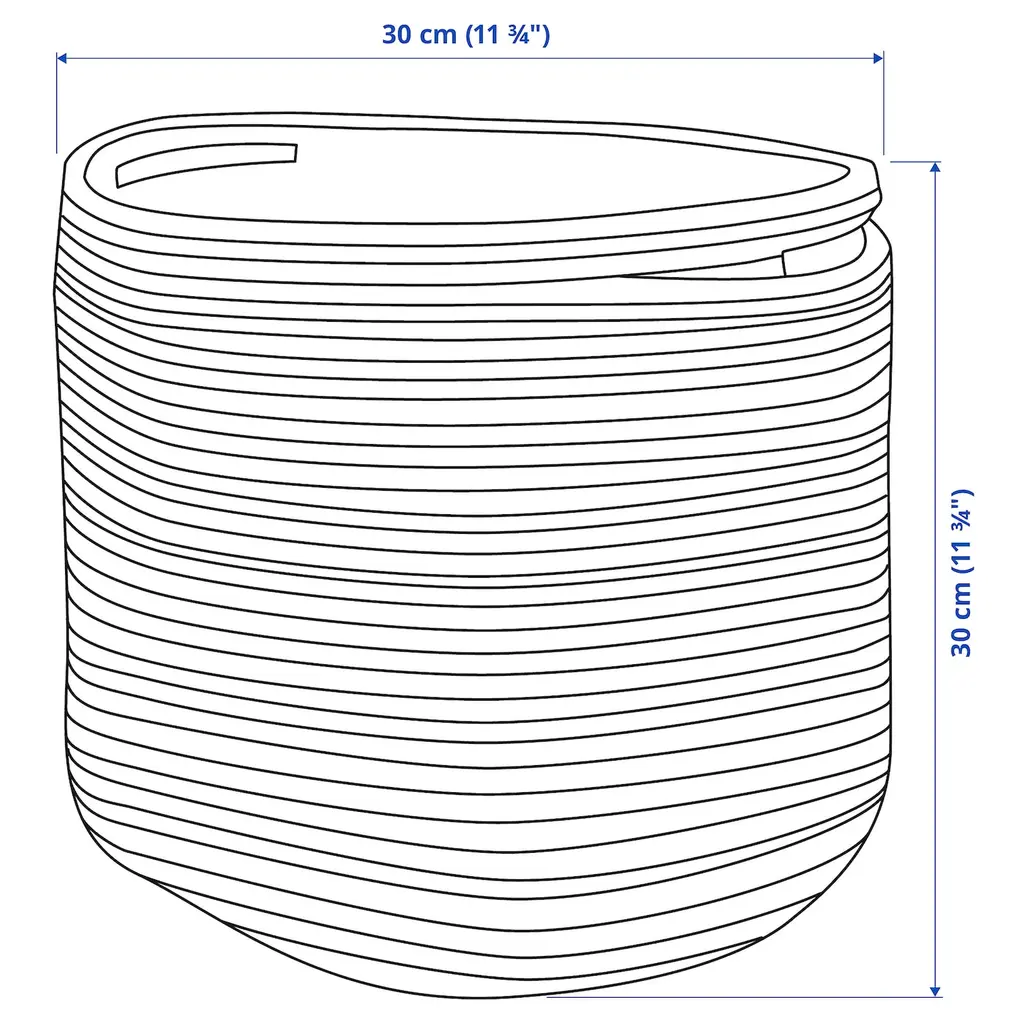 STRANDSKATA Storage bag - braided/multicolor 11 ¾ ". Braided from 100% cotton, which makes the storage bag soft and safe for your child to play with. Practical and decorative storage that makes it easier for you and your child to keep track of everything from toys and towels to throws and laundry.