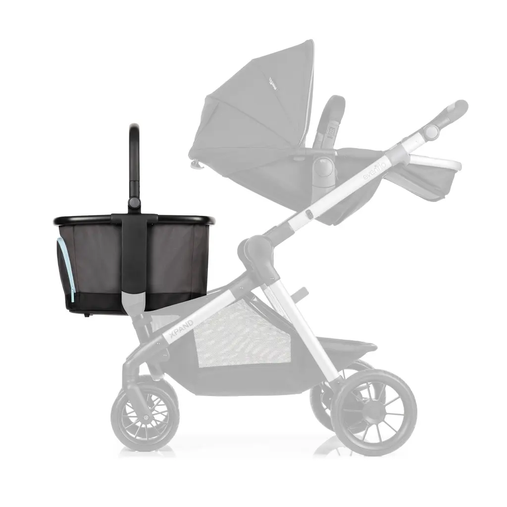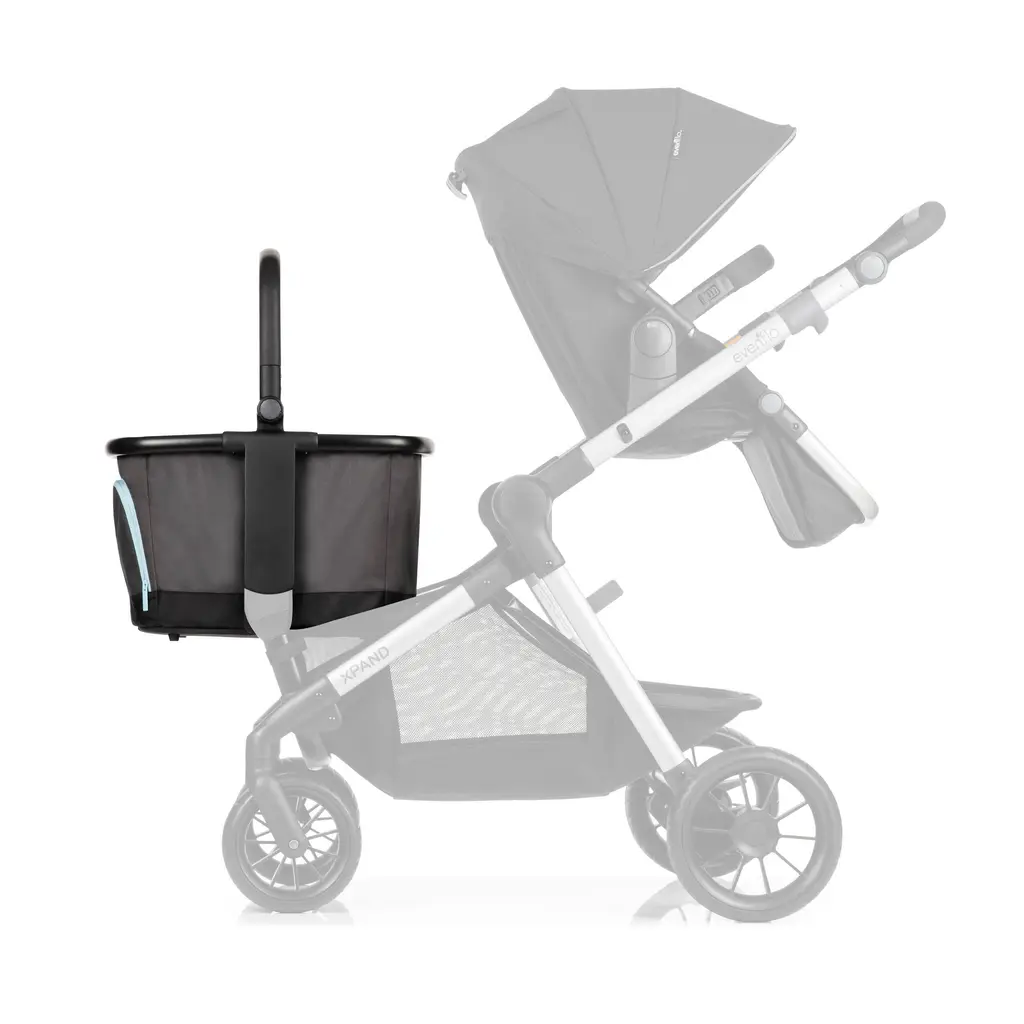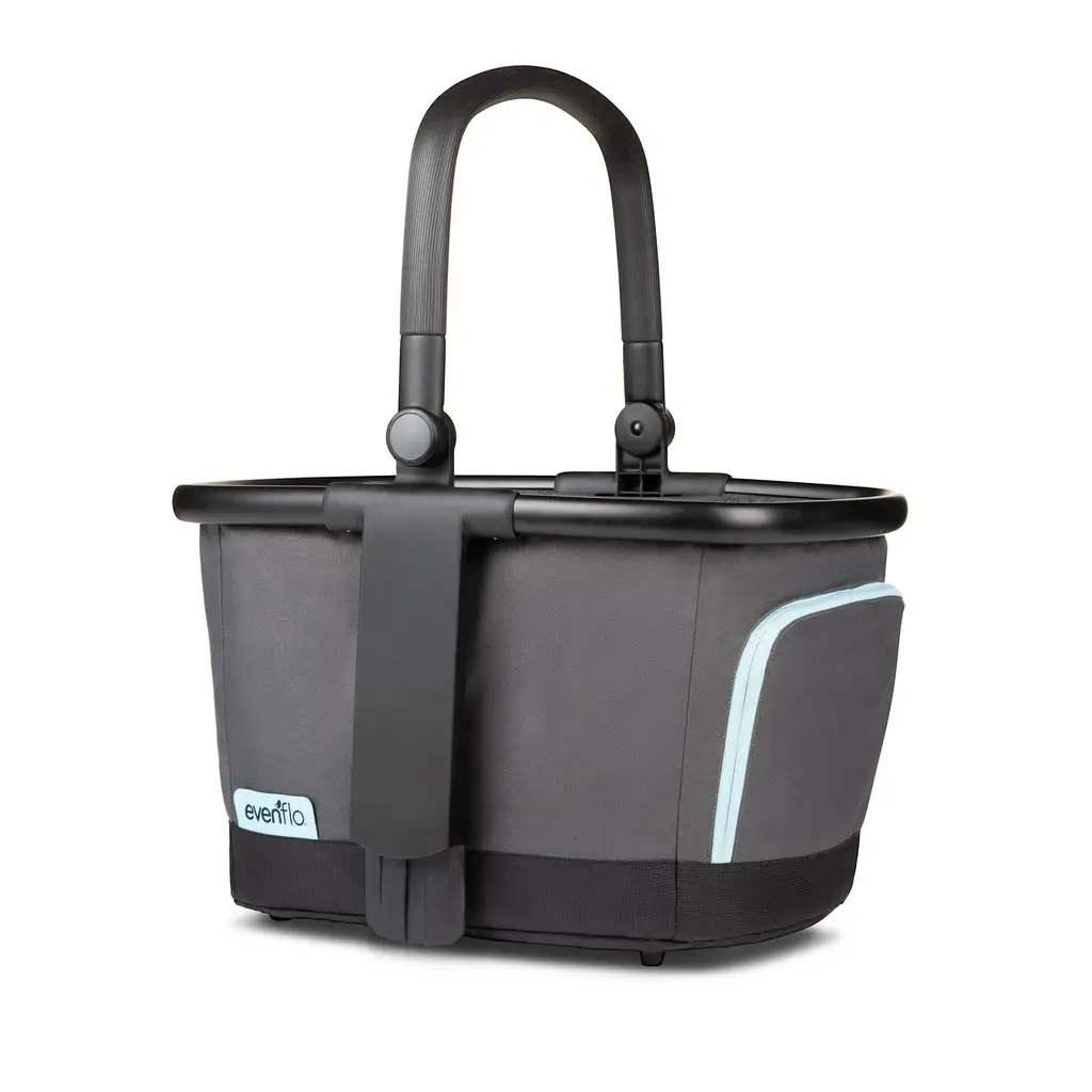Designed for convenience and practicality, the lightweight Evenflo® Stroller Market Basket puts more stroller storage within reach while you're on the go with your little one. If you own a Pivot® Xpand™ Modular Stroller, the basket attaches to the upper or lower towers to accommodate where your child is seated most comfortably, and easily removes for use as a tote. Generously proportioned, the 19 in. W x 14.24 in. D x 12 in. H basket holds up to 40 lb and includes a side zip pocket to contain smaller essentials. The flat bottom and sturdy, structured, non-collapsible sides allow you to set it down for loading and unloading — and the adjustable handle that folds down and out of your way. Take your Stroller Market Basket to the store and shop without the hassle of a dirty shopping cart or wasteful plastic shopping bags. More than just a "market" basket, you'll find that it comes in handy for a range of activities, easily transferring from stroller to car to home. Take it on picnics, to the farmer's market or apple picking. Load it up with gym clothes, books or playdate toys. When the occasional spill happens, the durable material wipes clean with ease. The Stroller Market Basket is compatible with Evenflo® Gold Pivot® Xpand™ Modular Travel System, Pivot® Xpand™ Modular Stroller, Pivot® Xpand™ Modular Travel System, Pivot® Troop™ Child and Pet Travel System, and Evenflo® Gold Shyft™ Travel System
