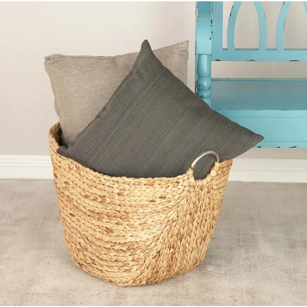 Add a dash of natural beauty within your light-toned living spaces as you place your clean laundry and pillows on this multi-purpose wicker basket. This item ships in 1 carton. Due to the handmade nature of these, there will be slight color, shape, and size variations, as well as loose fibers. Suitable for indoor use only. This item ships fully assembled in one piece. Maximum weight limit is 5 lbs. Made in Vietnam. This is a single brown colored basket organizer. Contemporary style.