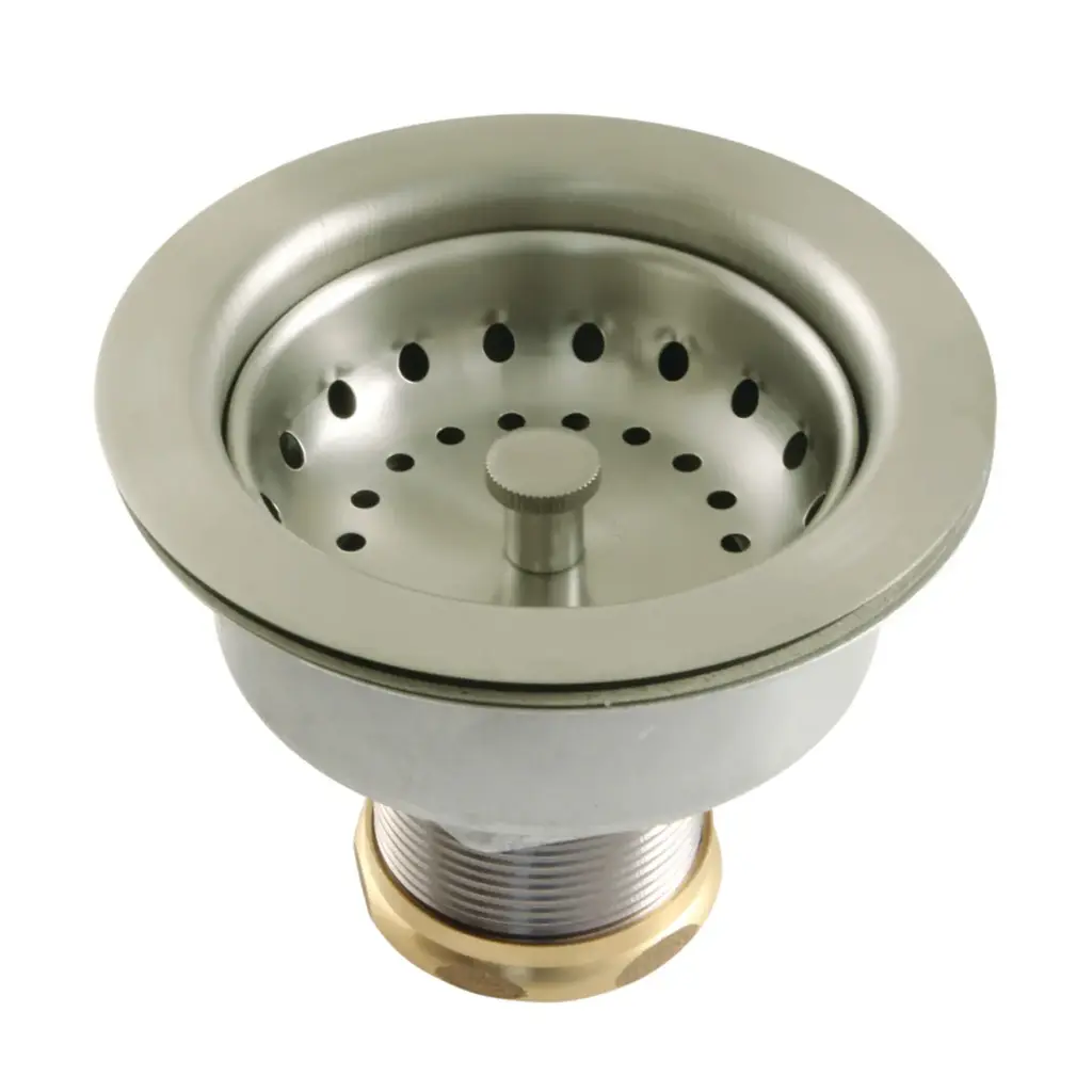 Easy to install and able to fit above most standard kitchen sink drain openings, the Tacoma Snap-N-Tite kitchen sink basket strainer keeps unwanted items from clogging your drain. The available premium finish options puts the finishing touches on your kitchen design as you can coordinate the sink drain with your faucet.FeaturesFabricated from 34 grade stainless steelFits standard 3-1/2" drain openingEasy Snap-n-Tite action4-7/16" diameterHeight: 3-13/16"Includes brass nutCorrosion-resistant finishEasy installationDesigned for long-lasting durabilityProp 65 disclaimerWARNING: This product can expose you to chemicals, including lead which is known to the State of California to cause cancer or birth defects or other reproductive harm, for more information, go to www.p65warnings.ca.gov