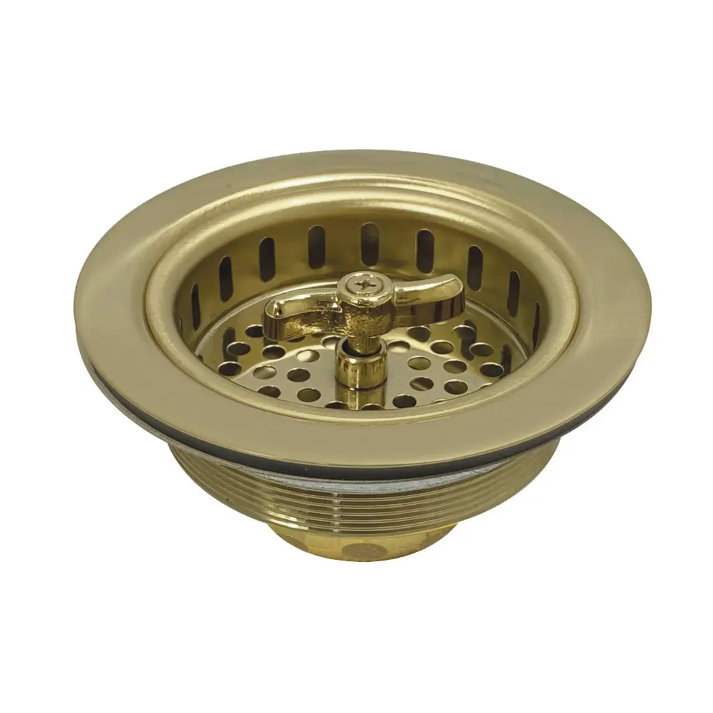 Easy to install and able to fit above most standard kitchen sink drain openings, the Tacoma spin and lock kitchen sink strainer keeps unwanted items from clogging your drain. The available premium finish options puts the finishing touches on your kitchen design as you can coordinate the sink drain with your faucet.FeaturesFabricated from 34 grade stainless steelFits sink with 3-1/2" drain openingSpin and lock strainer4-7/16" diameterHeight: 2-5/16"Corrosion-resistant finishEasy installationDesigned for long-lasting durabilityProp 65 disclaimerWARNING: This product can expose you to chemicals, including lead which is known to the State of California to cause cancer or birth defects or other reproductive harm, for more information, go to www.p65warnings.ca.gov