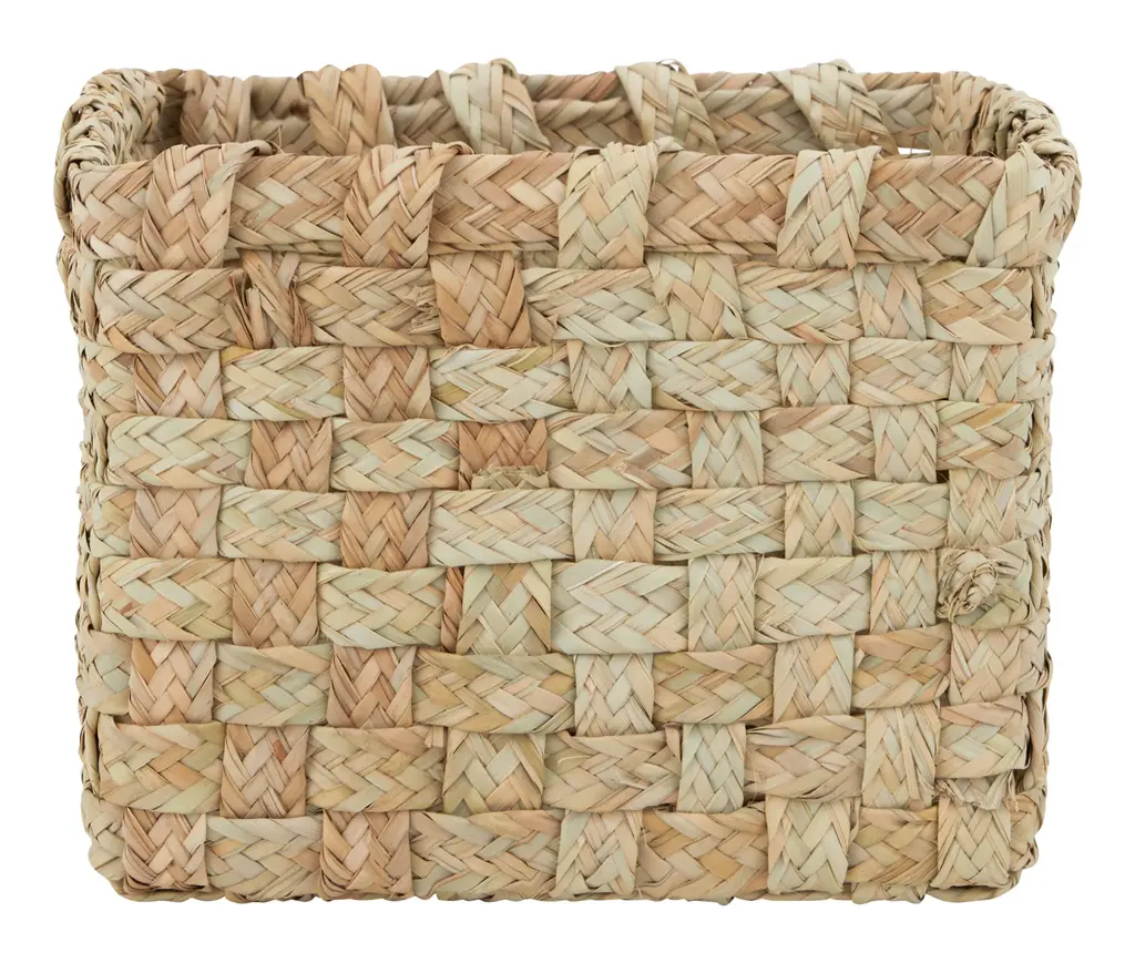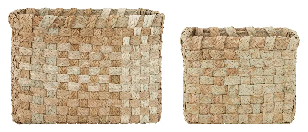 Keep your home tidy with the help of our earthy Tazzarine Baskets. These textural beauties come to us from Morocco, where each one was handwoven from thick strips of braided rattan by skilled local artisans. The ultimate organizing secret weapon, they’re perfectly sized for bookcases, pantry shelves or linen closets, where they can corral clutter in global-chic style. •handwoven rattan •morocco •each is unique; variations in shape, size and natural characteristics should be expected Dimensions •small: approximately 14"W x 11.75"D x 9.5"H •large: approximately 18.25"W x 12.5"D x 11.75"H