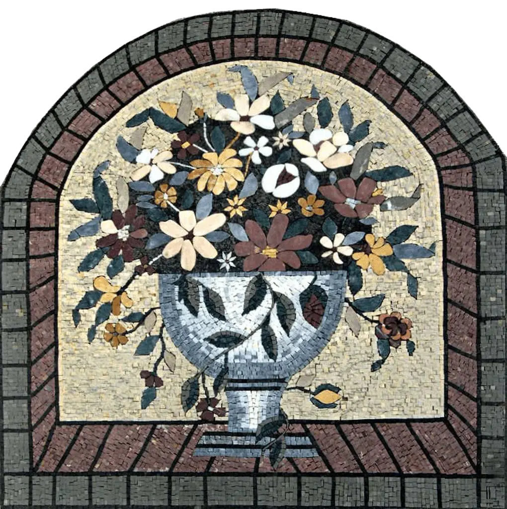 Introducing "The Colorful Daisies Mosaic Basket" – a stunning masterpiece that brings the beauty of nature into your home. This exquisite decorative piece features a carefully crafted arched marble mosaic designed to resemble a vibrant arrangement of cheerful daisies. Each stone and tile is hand-cut and meticulously assembled, showcasing the artistry that goes into creating this unique work of art. The Colorful Daisies Mosaic Basket is not only visually captivating but also sustainable, as it is made from all-natural stones. It serves as a perfect enhancement for any wall mural or can be creatively displayed in a variety of spaces throughout your home. Whether you want to brighten up your living room, add charm to your entryway, or create a focal point in a garden or patio, this mosaic basket provides endless decorating possibilities.Imagine the compliments you’ll receive from guests as they admire the intricate detail and vibrant colors of the daisies, seemingly plucked from nature itself. Each piece tells its own story, combining tradition and craftsmanship to breathe life into your decor.This handcrafted marvel is also a thoughtful gift for art lovers, nature enthusiasts, or anyone looking to elevate their home ambience. Allow The Colorful Daisies Mosaic Basket to be the centerpiece of conversation and a lasting addition to your décor that inspires joy and creativity. Make every day a little more colorful with this delightful mosaic creation!