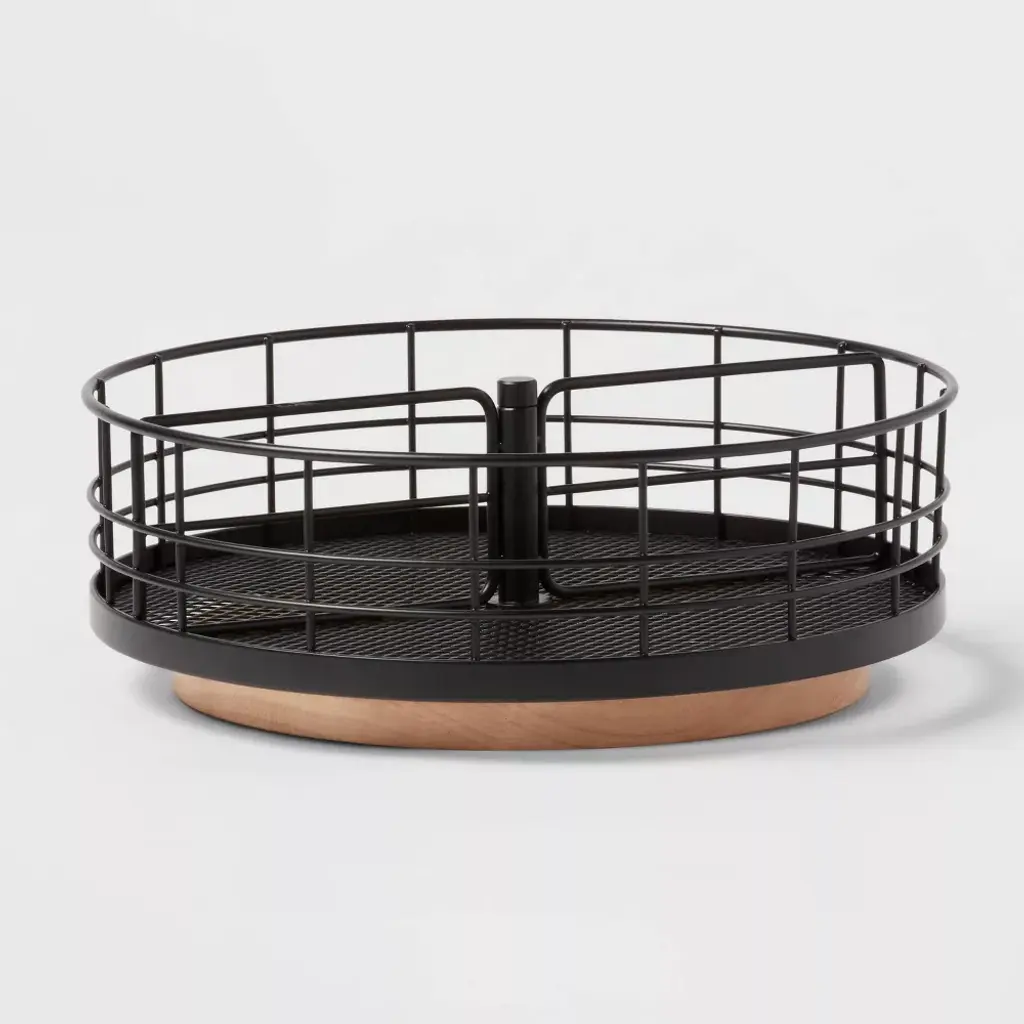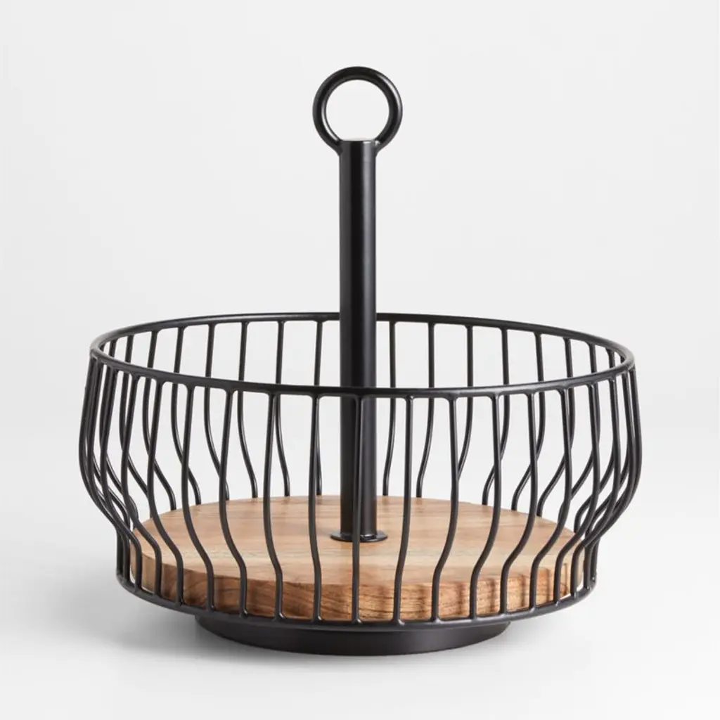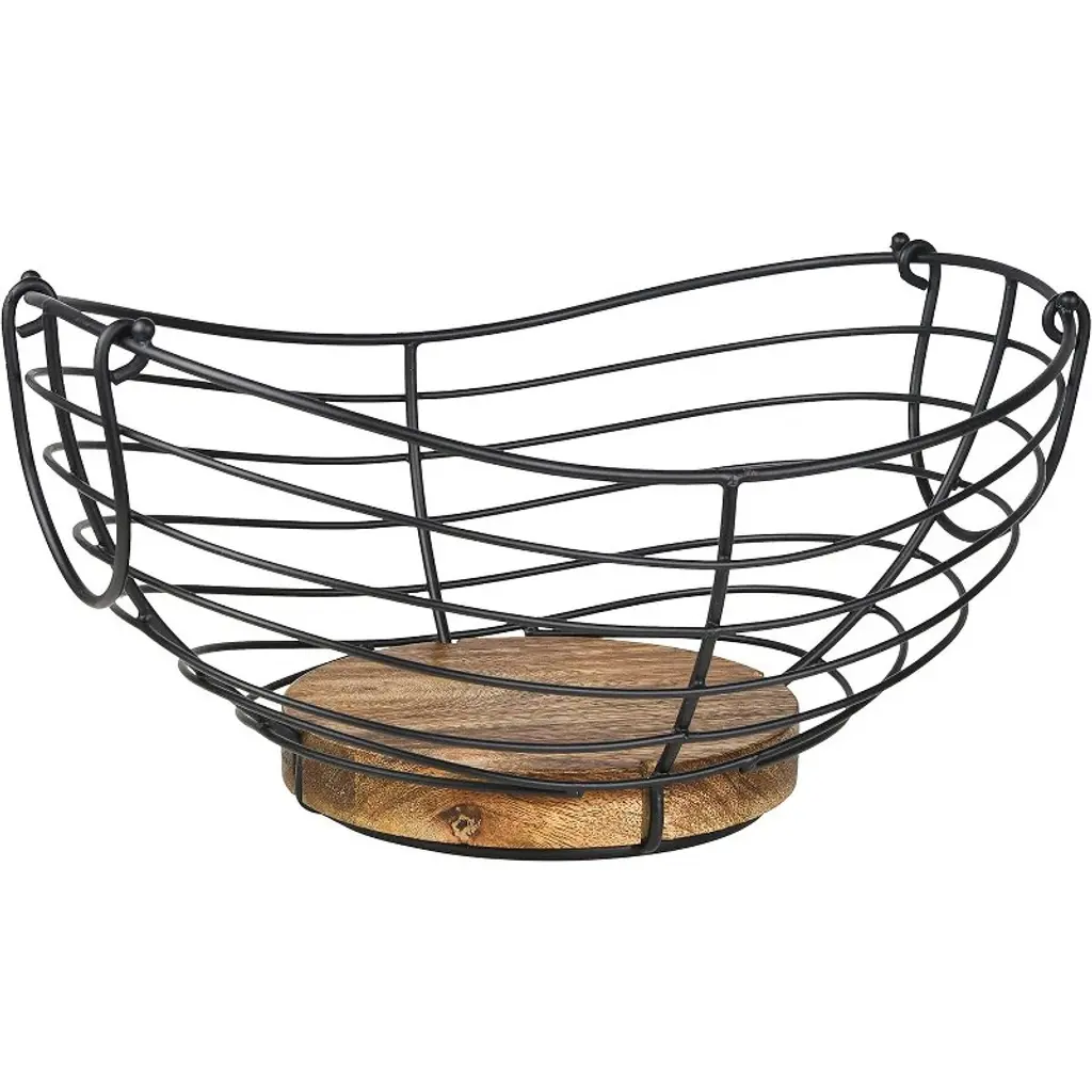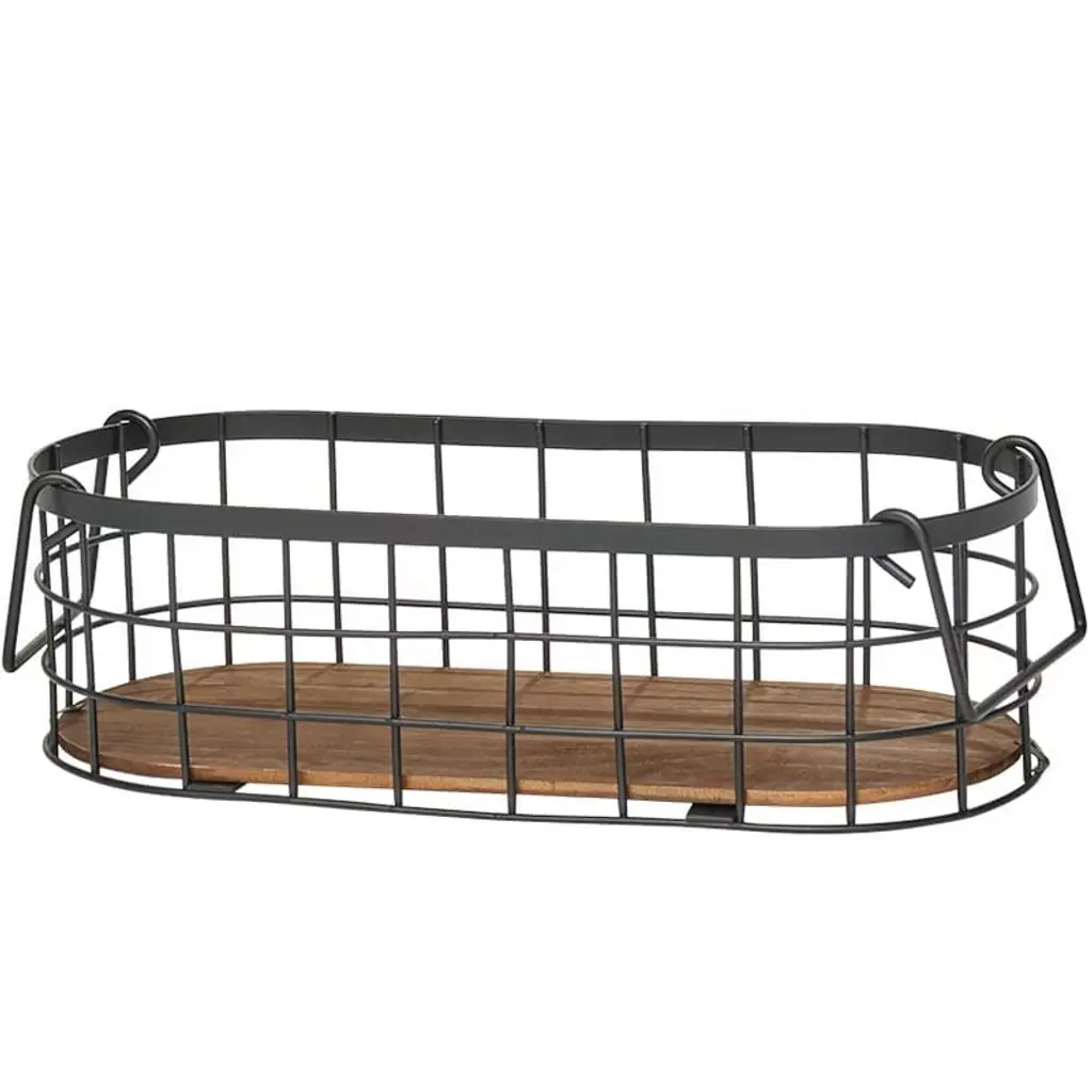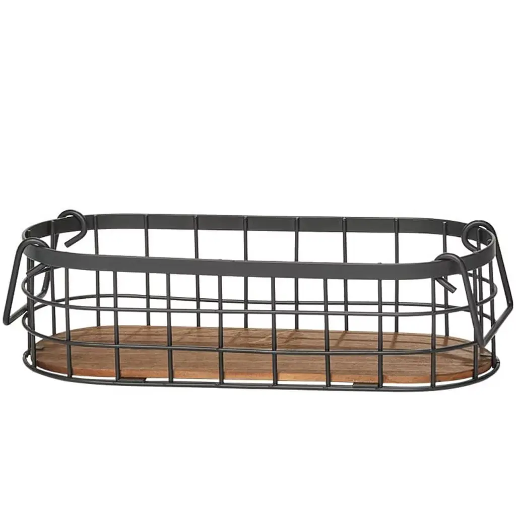 The Set of 2 Kitchen Baskets provides a flexible storage solution for all your kitchen essentials, from fruit to utensils. The sleek design not only keeps everything within easy reach but also adds a touch of contemporary flair to your decor. Perfectly versatile, these baskets can be used in various areas of your home, making them a practical addition to any space. With their chic look and incredible functionality, you'll wonder how you managed without them. Made of: Metal, MDF Set includes: , Small, 11-5/8"W x 4-1/2"D x 3-1/4"H, Large, 13"W x 5-1/2"D x 3-3/4"H