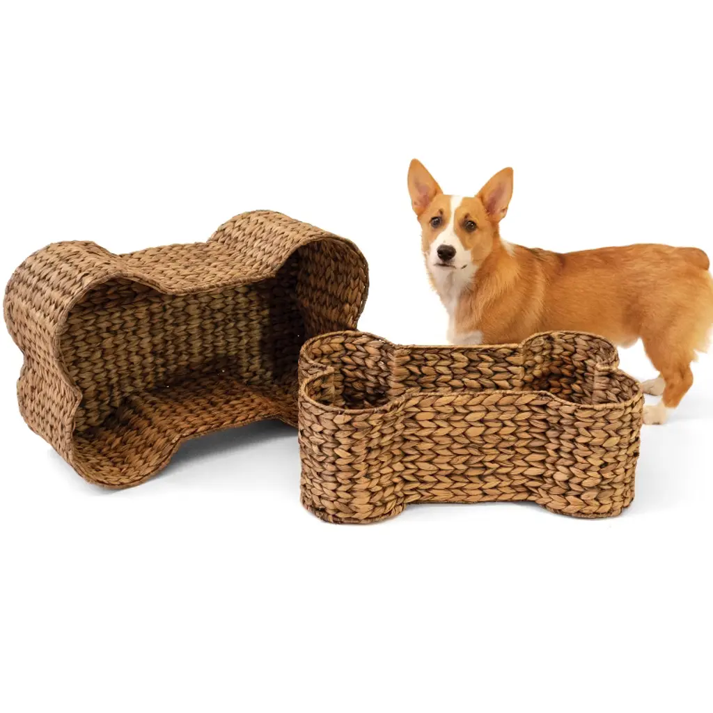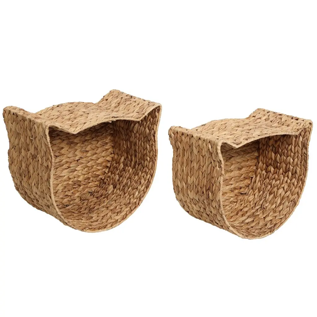 Store pet supplies and toys in style with these adorable kitty-shaped baskets. Versatile baskets are made from sustainable water hyacinth for a traditional look. While they nest together for storage, they're too cute to put away.