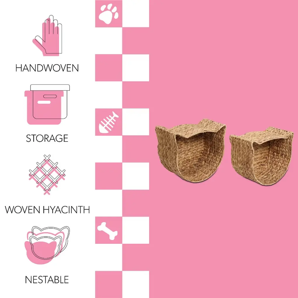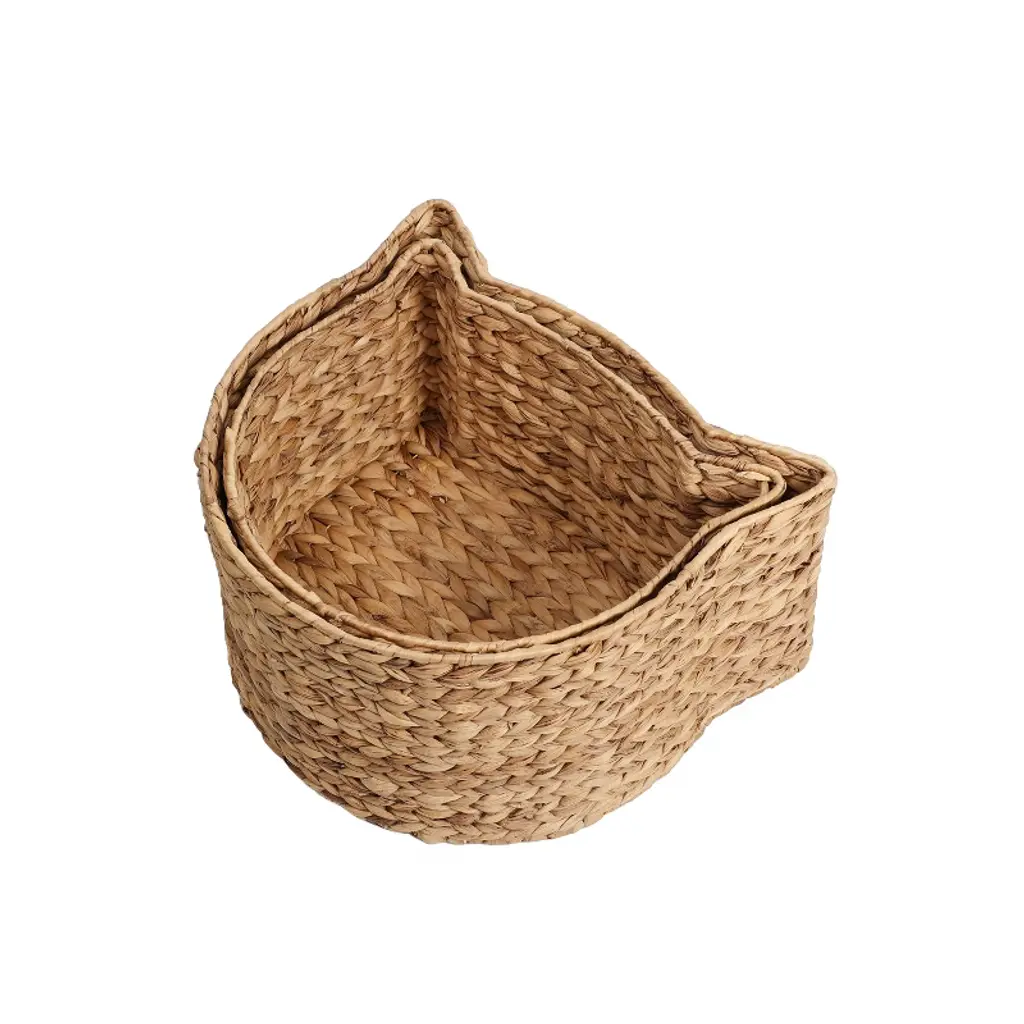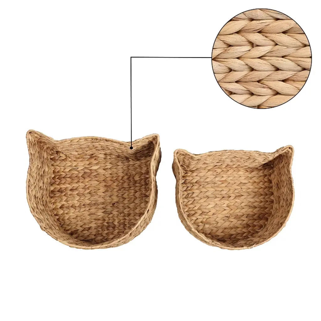 The Licker Store Felix Cat-shaped Hand Woven Water Hyacinth Nesting Pet Toy Organizer Baskets, Natural (Set Of 2)