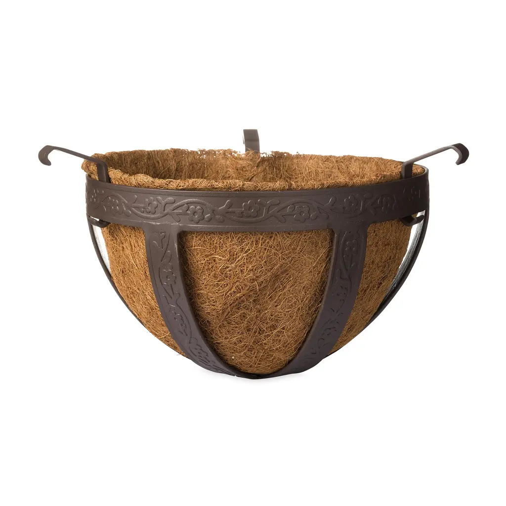 Tierra Garden 14" York Deluxe Hanging Basket With Coco Liner & Matte Black Powder-coated Finish