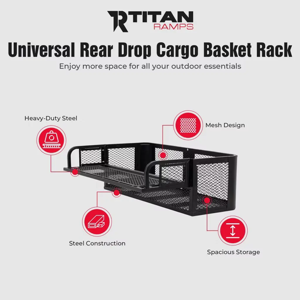 Titan Ramps Universal Atv/utv Rear Drop Cargo Basket Rack With 150 Lb. Capacity And Steel Construction For Carrying Buckets, Coolers, Or Other Gear