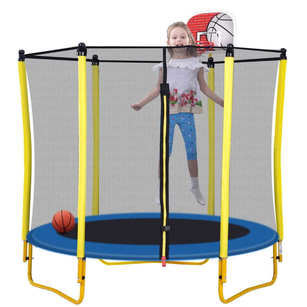 Trampoline Outdoor & Indoor Mini Toddler Trampoline With Enclosure, Basketball Hoop And Ball Included - Yellow