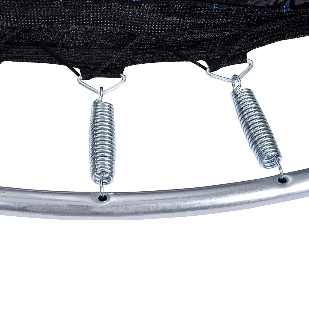 This outdoor trampoline with basketball hoop, balance bar design, unique balance bar plus W-shaped legs, provide double stability, also specially designed balance bar to connect each leg, provide more uniform force, make the trampoline more stable, prevent the trampoline rod bending or even breaking, double stability, double safety. The U-shaped steel frame provides a solid base structure, while the safety pad and high zipper housing provide comprehensive protection, without worrying about the safety of children, all around the protective net protection and spring protective pad, so that children can play freely, adults can also enjoy it. Selection of high-quality materials, all exposed galvanized pipe, spray treatment, 100% anti-rust and anti-oxidation, galvanized anti-rust coating, corrosion resistance, part of the PE material, better wear resistance UV. The chunky spring protective cover protects the child's feet from injury, and the foam and PE plastic wrapped mesh rods and safety nets together protect the child 360 from collisions.