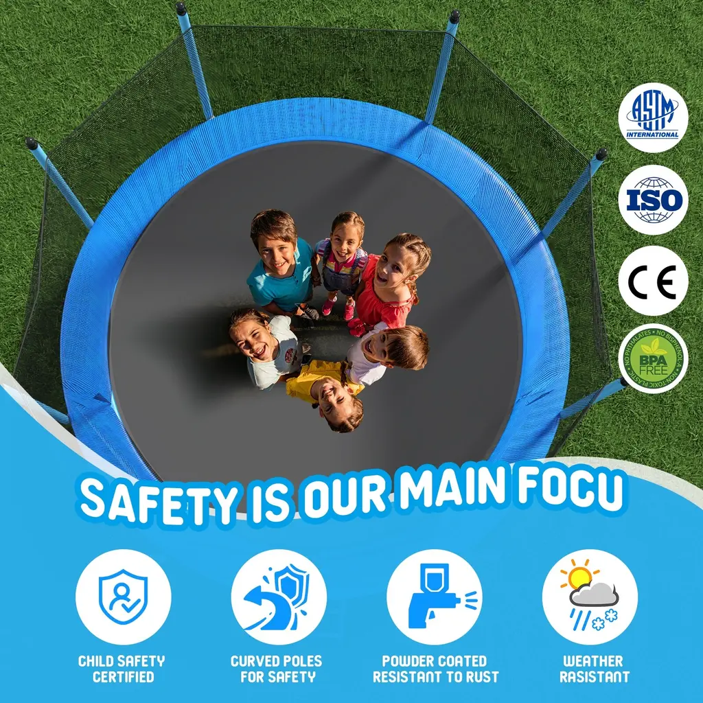 Trampoline Outside Safety Net With Basketaball Hoop - Blue