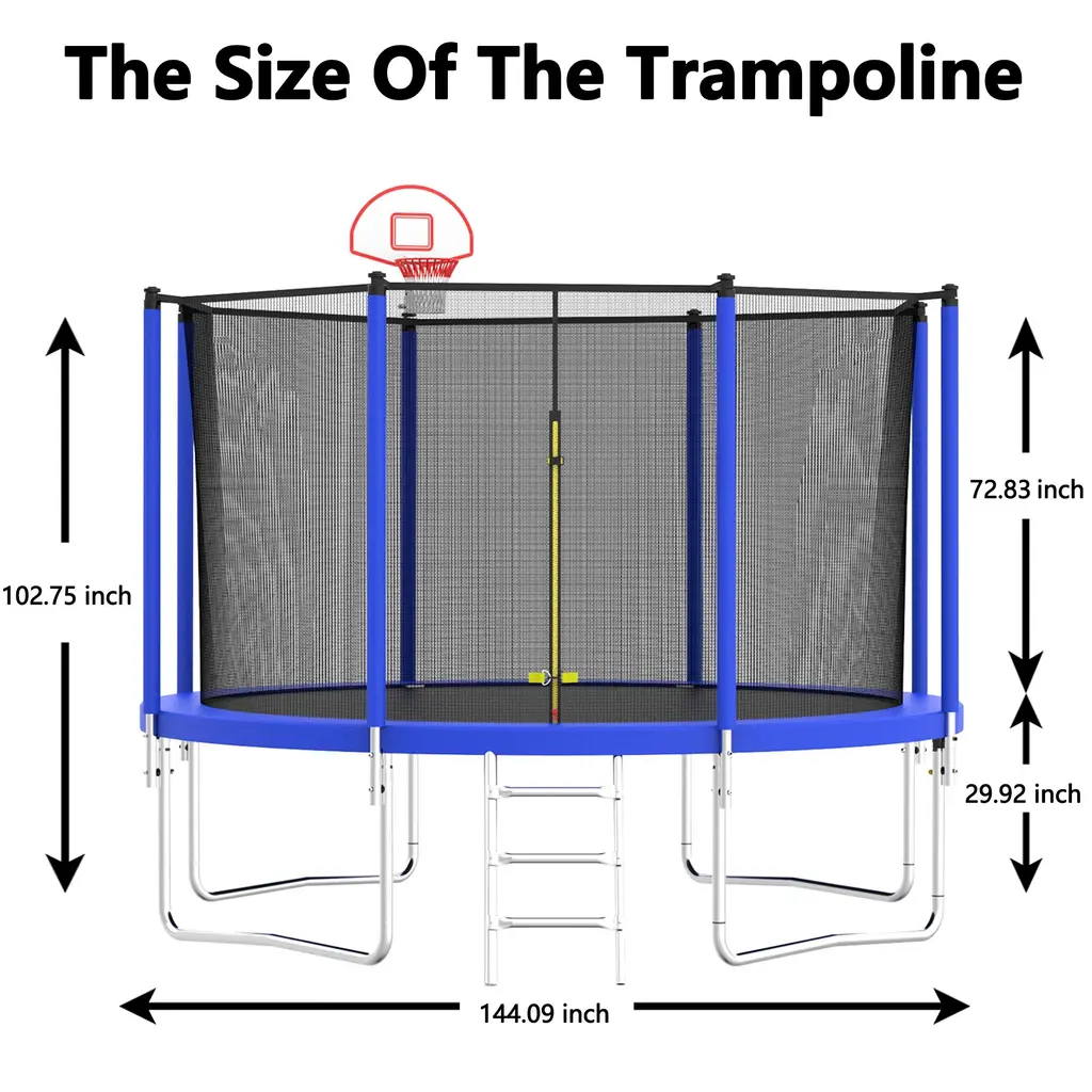 Trampoline With Basketball Hoop And Ball ,Recreational Trampolines With Safety Enclosure - N/a - Blue