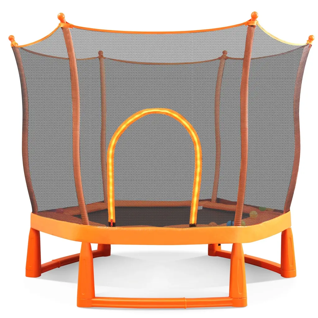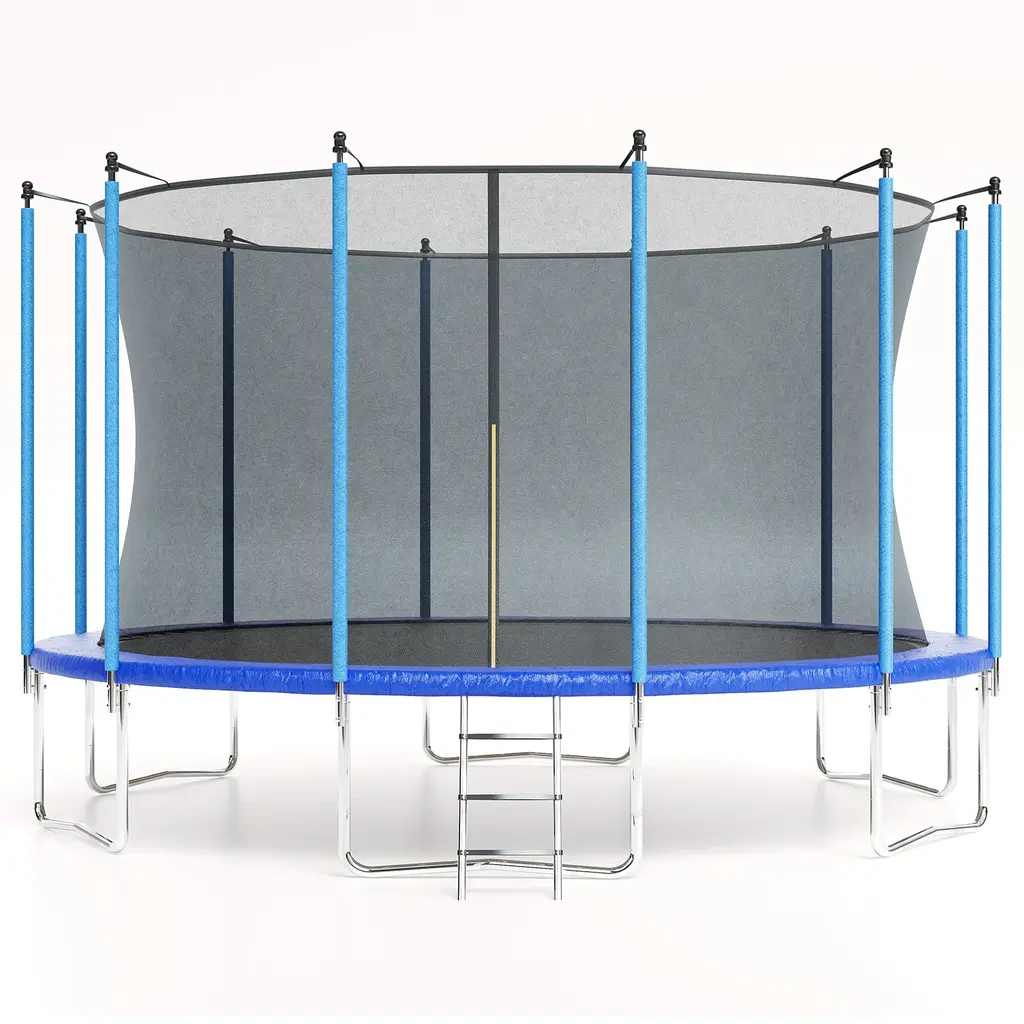 our "Trampoline for Adults & Kids with Basketball Hoop, Double-sided Cover, Outdoor Trampolines with Ladder and Safety Enclosure Net". This trampoline is not only loaded with fun features but also emphasizes safety for an enjoyable and worry-free playtime.Key Features:✨ Safeseal System: This trampoline features a 360-degree safety net that is securely attached to the jumping mat all the way around, reducing the risk of an arm or leg falling through. A full enclosure with a zipper door ensures peace of mind. The rust-resistant steel 4-step ladder helps you get onto your trampoline quickly and safely.✨ Premium Bouncing Experience: The high-strength trampoline mat is woven together to handle constant flexing, making it durable and soft on your feet. 108 galvanized springs evenly stretched around the mat ensure a smooth and responsive bounce.✨ Built with Durability: The heavy gauge galvanized steel frame forms 6 W-shaped legs to provide a stable base for the jumping zone. The joins are press-fitted onto each frame piece to reduce frame noise and movement between sections and ultimately, reduces overall wear and tear.✨ Fun Features: Jumping is more fun by adding a basketball goal, which will keep your kids busy all day. There's also a triangle net around the backboard to keep the ball from flying off the trampoline.✨ Assembly Details: We have designed this trampoline to be as easy as possible to assemble. We recommend two or more people for assembly. A quick tip is to view the assembly sequence to reduce the construction time.This trampoline is sure to provide endless fun while ensuring safety and durability. Enjoy!