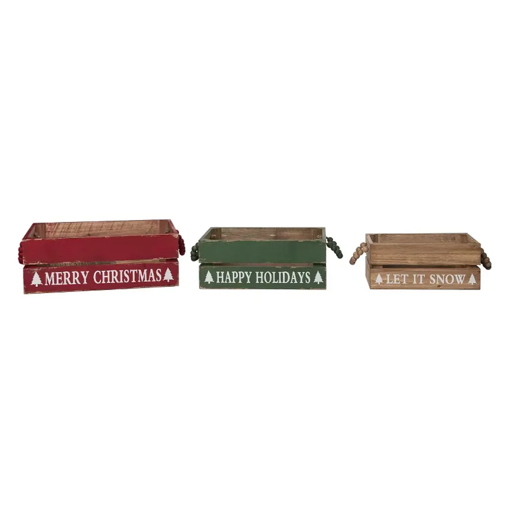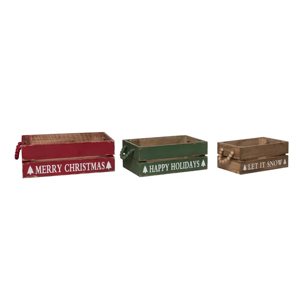 Transpac 10 In Multicolor Christmas Beaded Sayings Crates Set Of 3 Decorative Baskets Fir Wood Holiday Decor