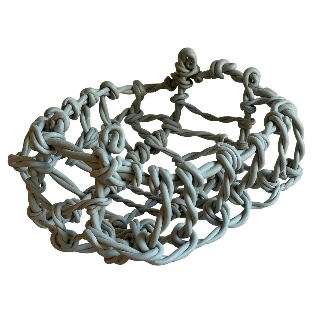A bold combination of sturdy and aesthetically captivating materials, this stunning basket is hand-crocheted of gray polypropylene and 8mm-thick, light gray-colored neoprene yarn. Effortlessly serving different purposes, it will add style and character to a contemporary decor. Available in various colors, please consult the Artemest catalog for options.