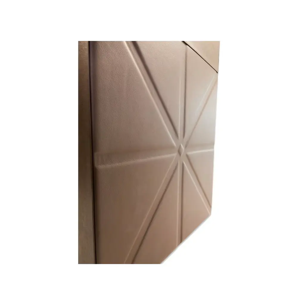 This tall basket will be an exquisite complement to a home study or an office used as a wastepaper basket. Elegant and practical, it boasts a sleek rectangular shape entirely crafted of wood wrapped in a fine and soft genuine grain leather cover, enhanced with a neutral brown hue. Available in 14 different colors upon request, please contact the Concierge for details.