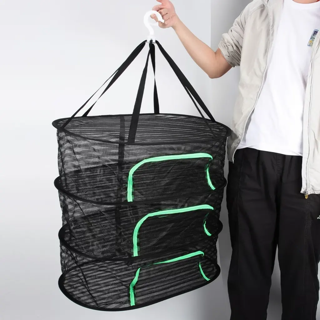 The clothes drying basket is soft to the touch, has no sharp-edged and hard surfaces, and is safe and reliable to use. It can easily accommodate your family's drying of clothes, keeping the room clean and tidy, and bringing great convenience to life. Can be fixed on the clothes drying rod, so there is no need to worry about it being blown away by the wind. The clothes drying basket is made of polyester mesh, steel wire, which has strong elastic recovery ability, strong and durable, light and heat-resistant. With tiling function, it can easily save space when not in use.