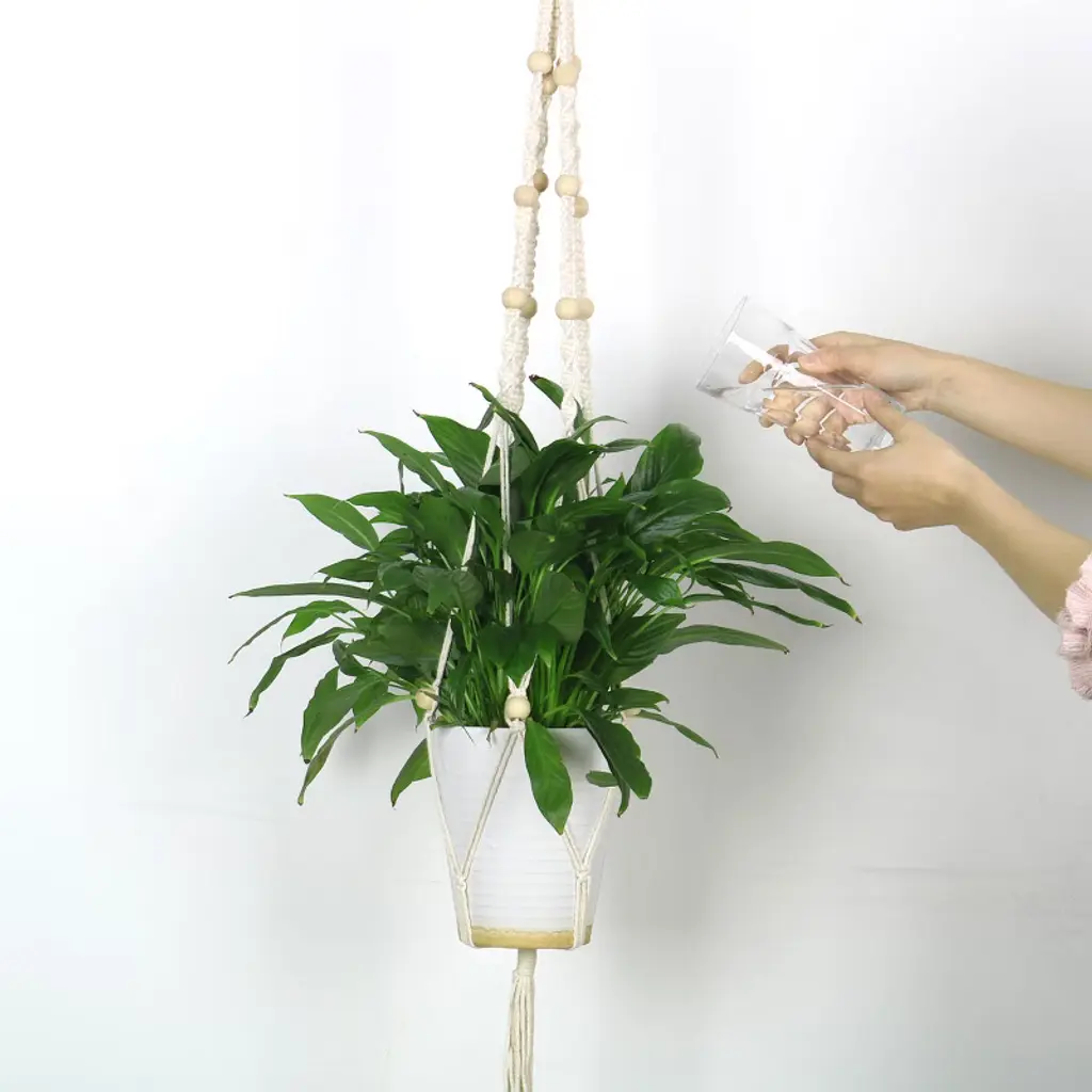 Unique Bargains Garden Cotton Rope Basket Macrame Plant Flower Planters Hanger Beige 47.2 Inch 1 Pc