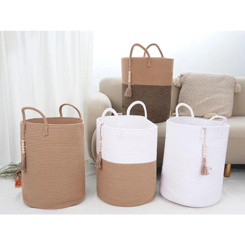 The basket for the bathroom, and designed with jute string and portable handles on the base. Minimalistic combined with a rustic style makes the whole flower basket simple and elegant. Handles design, easy to move and take away, free awesome practical adorable jute storage bin for daily use. These cotton rope baskets are designed to fit perfectly on shelves, closets, and even under beds, making them an ideal solution for organizing your home or office.