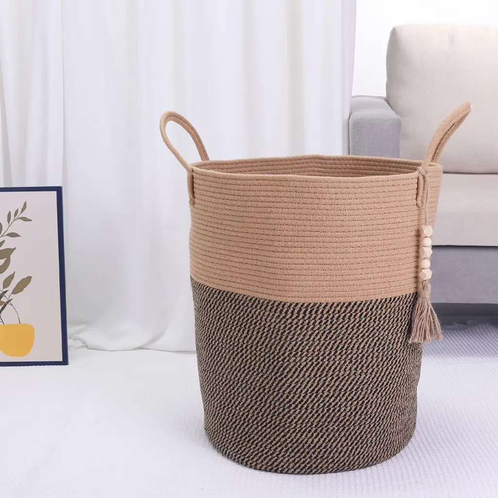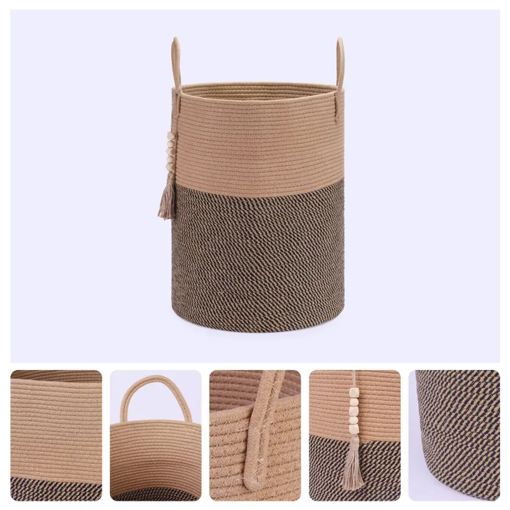 Unique Bargains Handcrafted Odorless Cotton Rope Widened Handles Storage Basket Coffee/black