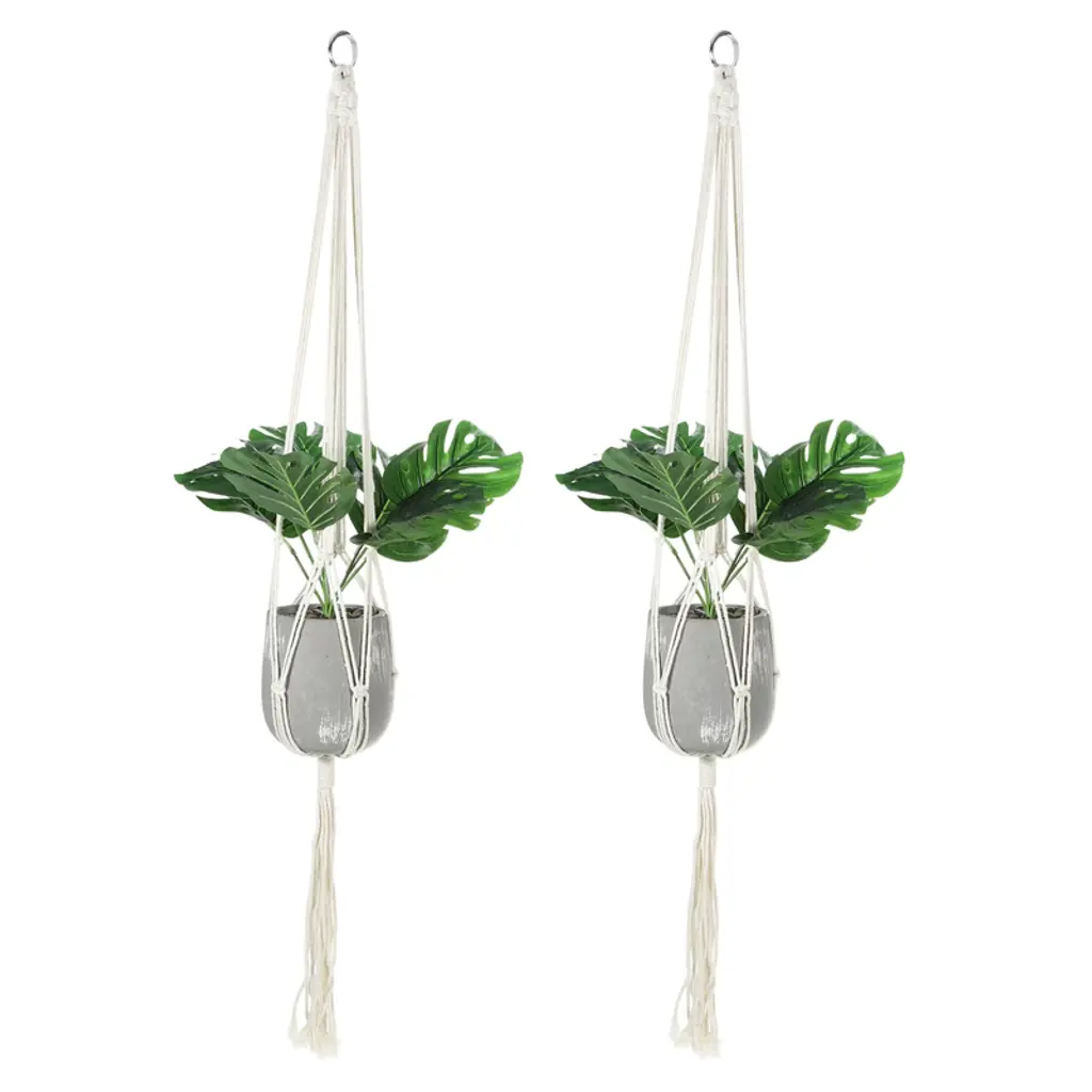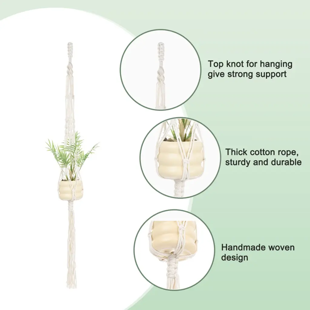 Unique Bargains Handmade Cotton Rope Hanging Basket Holder 41 Inch White 2-pack